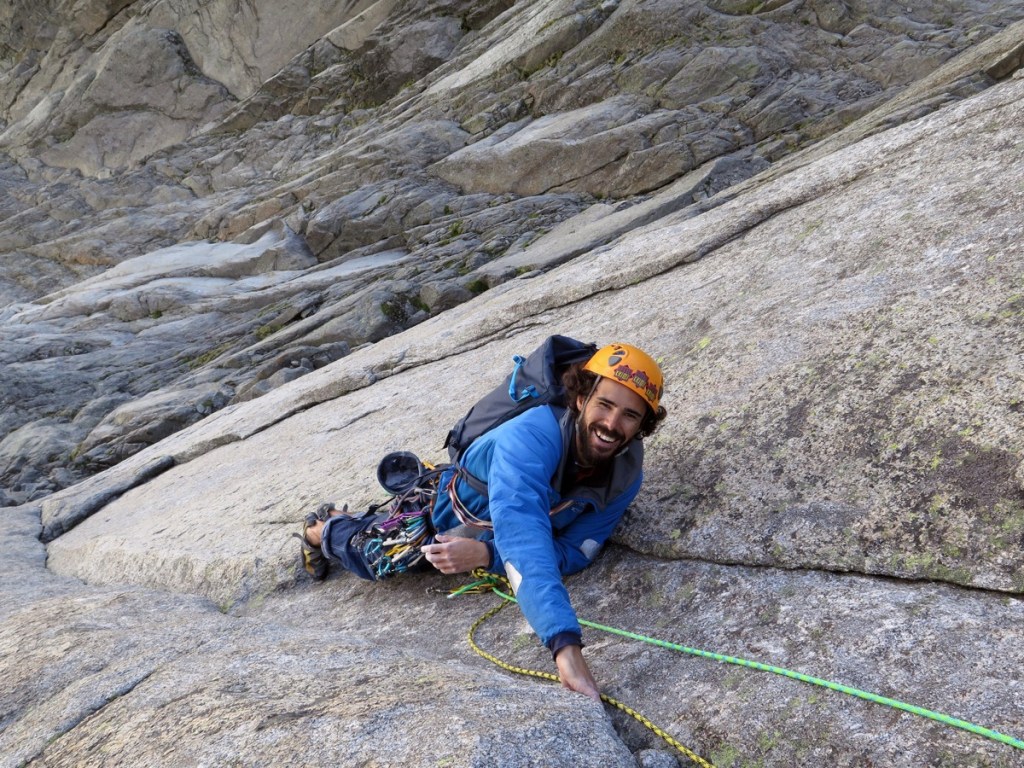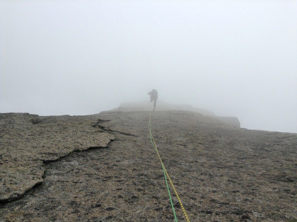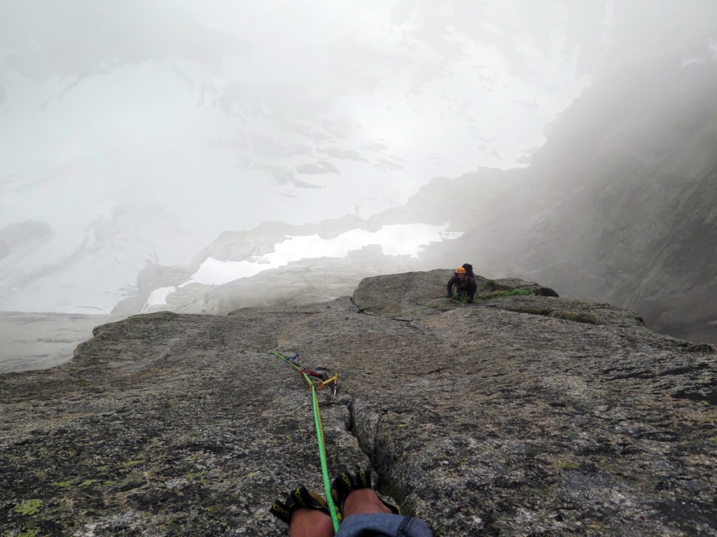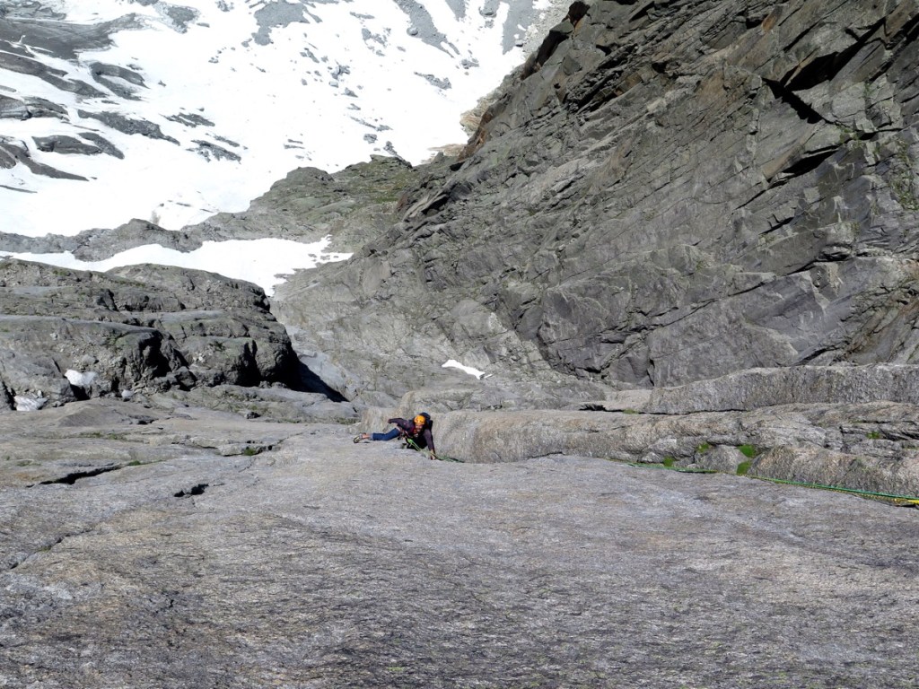A la fin de la longueur, Ben un peu éprouvé par son manque d’entrainement en granite, me glisse qu’il serait mieux que je reste devant. Et c »est avec plaisir que je m’y colle !