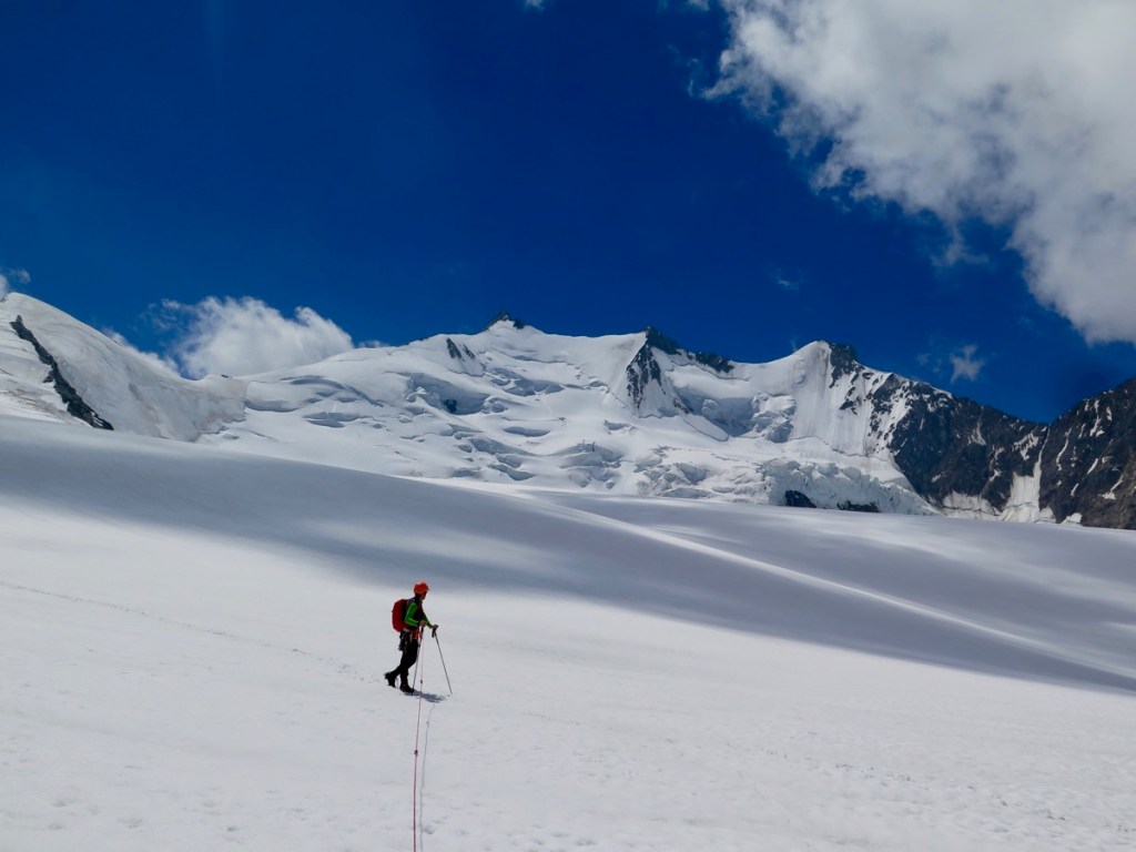 Remontée dans les pentes de neige en direction du Hohberghorn, 4219 m