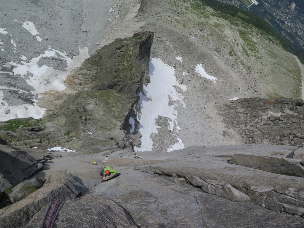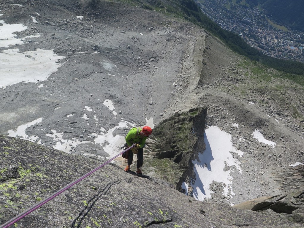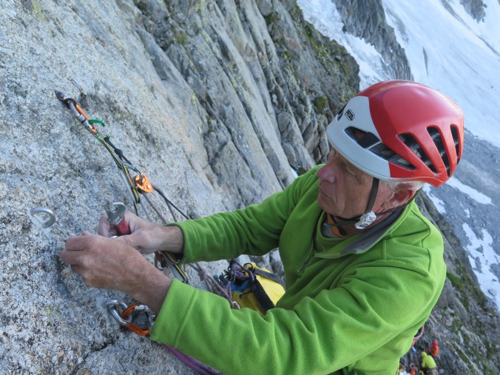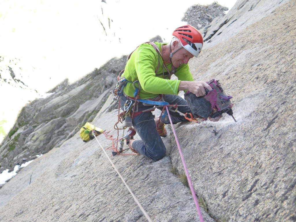 Encore un passage au Pilier Rouge de Blaitière avec Michel Piola. Au programme le rééquipement d’une voie mythique, Echec et Marx.
