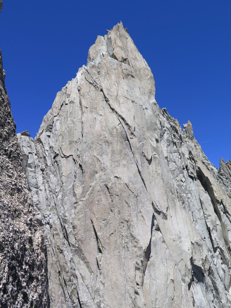 On entre dans un environnement minéral austère des pierres tombent déjà en face Nord de l’aiguille du Requin. Plus on se rapproche des parois plus elle paraissent imposantes, mais un étrange sensation nous fait sentir que nous sommes au bon endroit au bon moment..