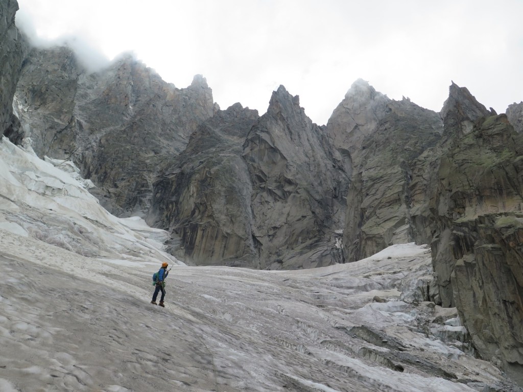 Nettement moins fréquentés que les classiques voies des Nantillons & autres, on s’est même entendu dire au refuge que les voies sont inaccessibles à cause de l’état du glacier. Pas de quoi nous décourager, il faudra qu’on aille voir de nous même !