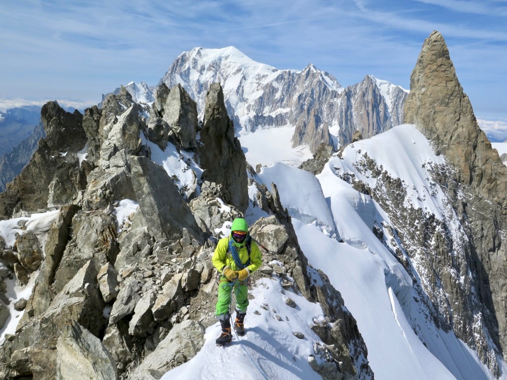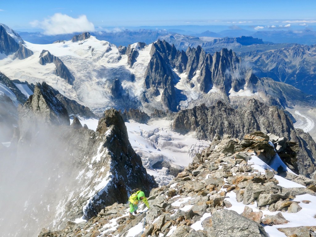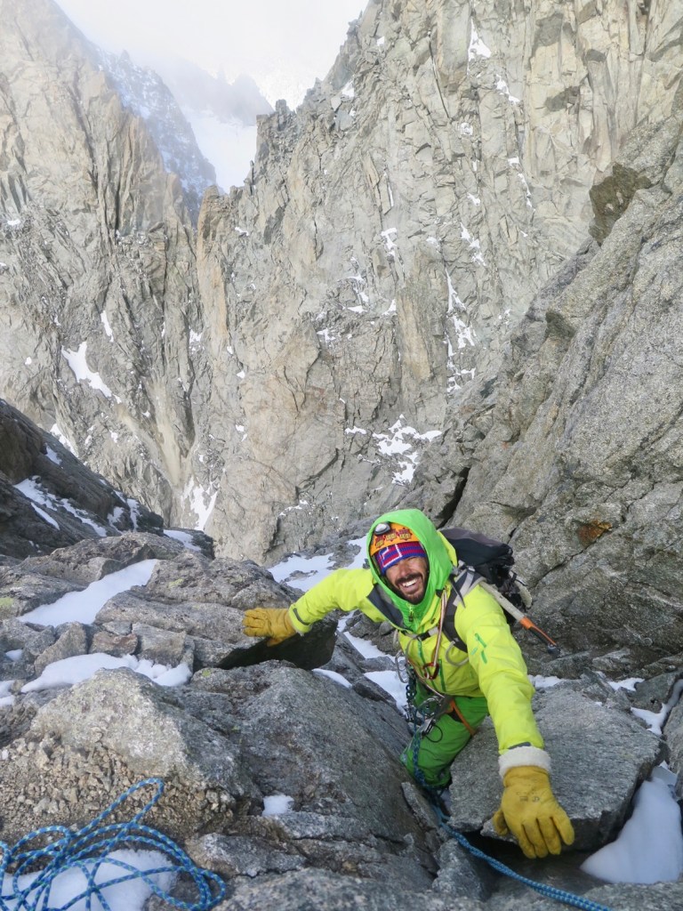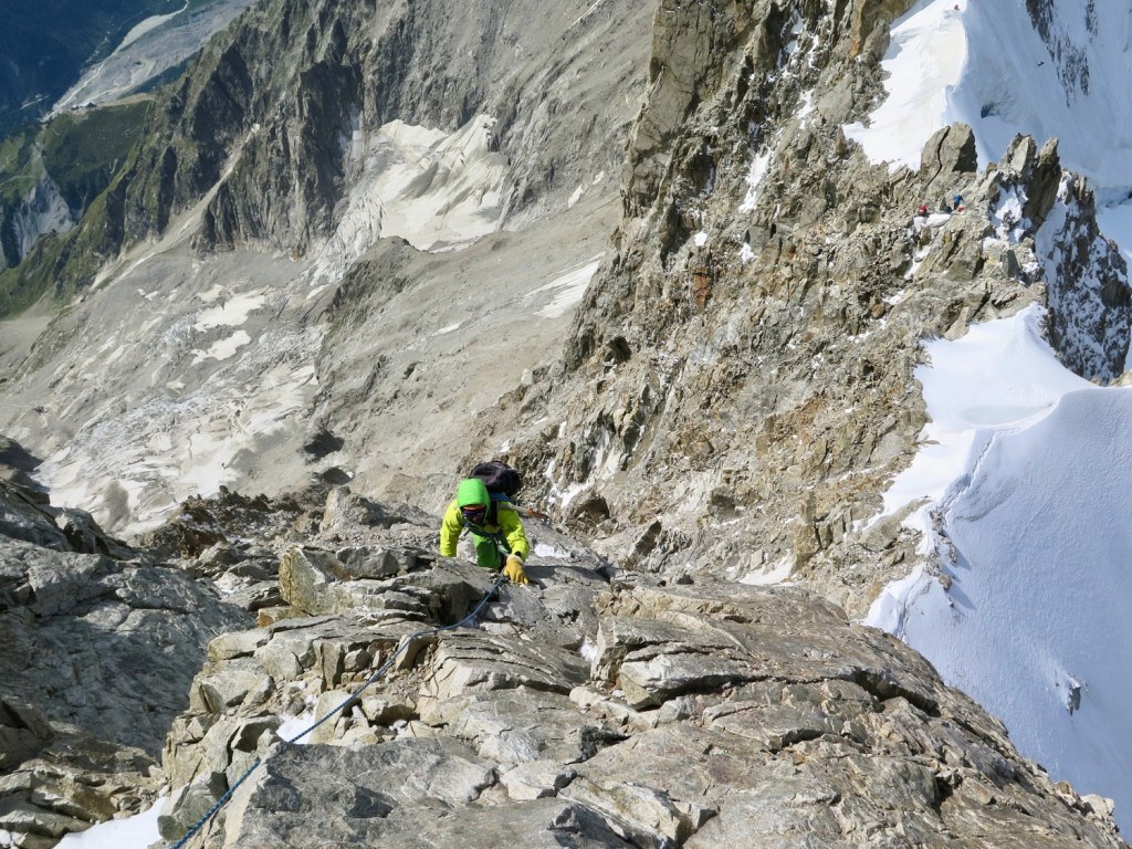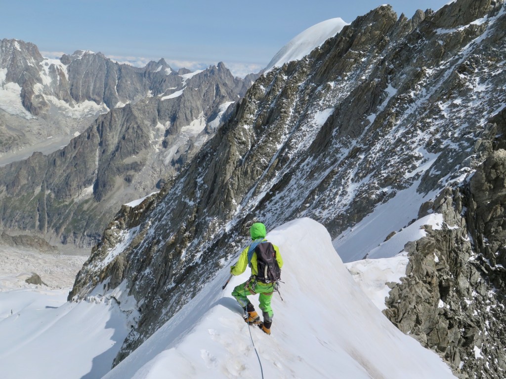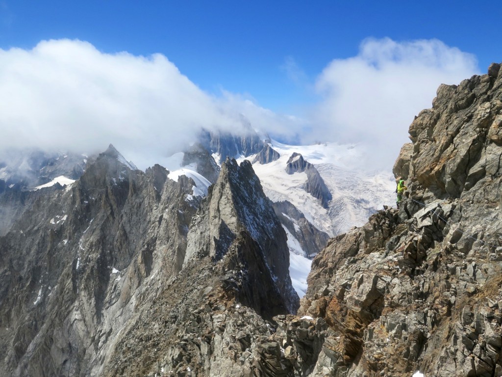 Après un magnifique parcours sur le fil du rasoir, on aperçoit le mixte de la monté à l’Aiguille de Rochefort, le premier 4000 de la traversée.