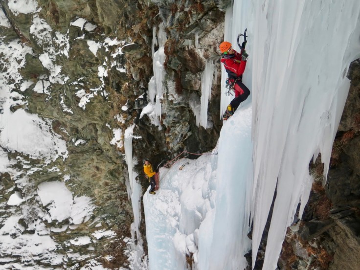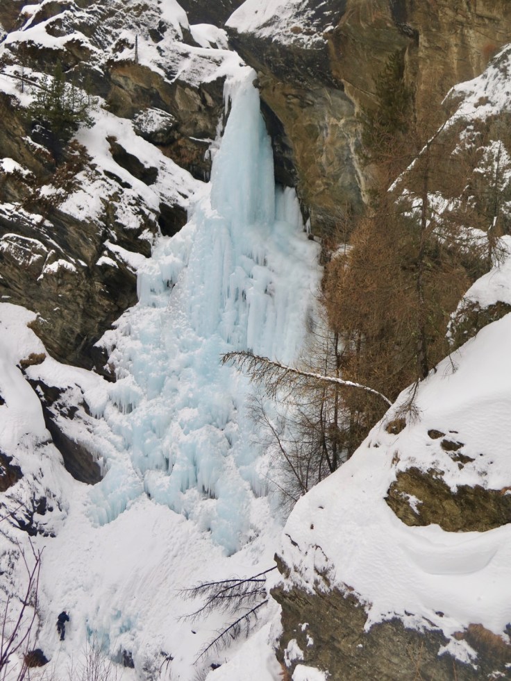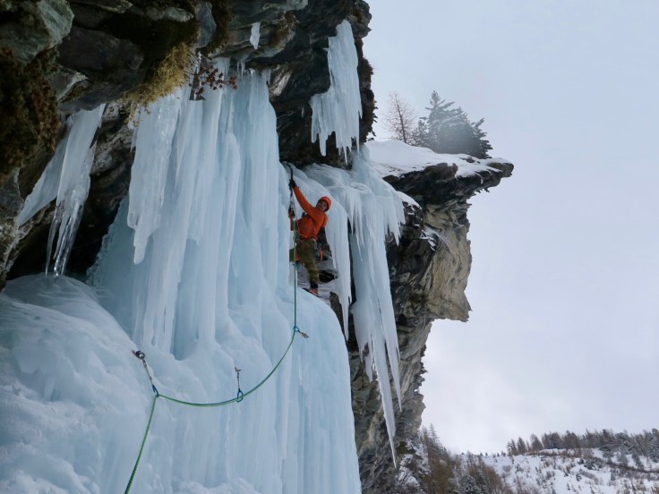 Ouverte par Ezio Marlier dans les années 90, le nom de cette cascade signifie « Le Bijou ». En cette début de saison de glace encore bien sèche, le bijou n’as pas encore daigné sortir tout ses joyaux, mais a tout juste de quoi faire notre bonheur…