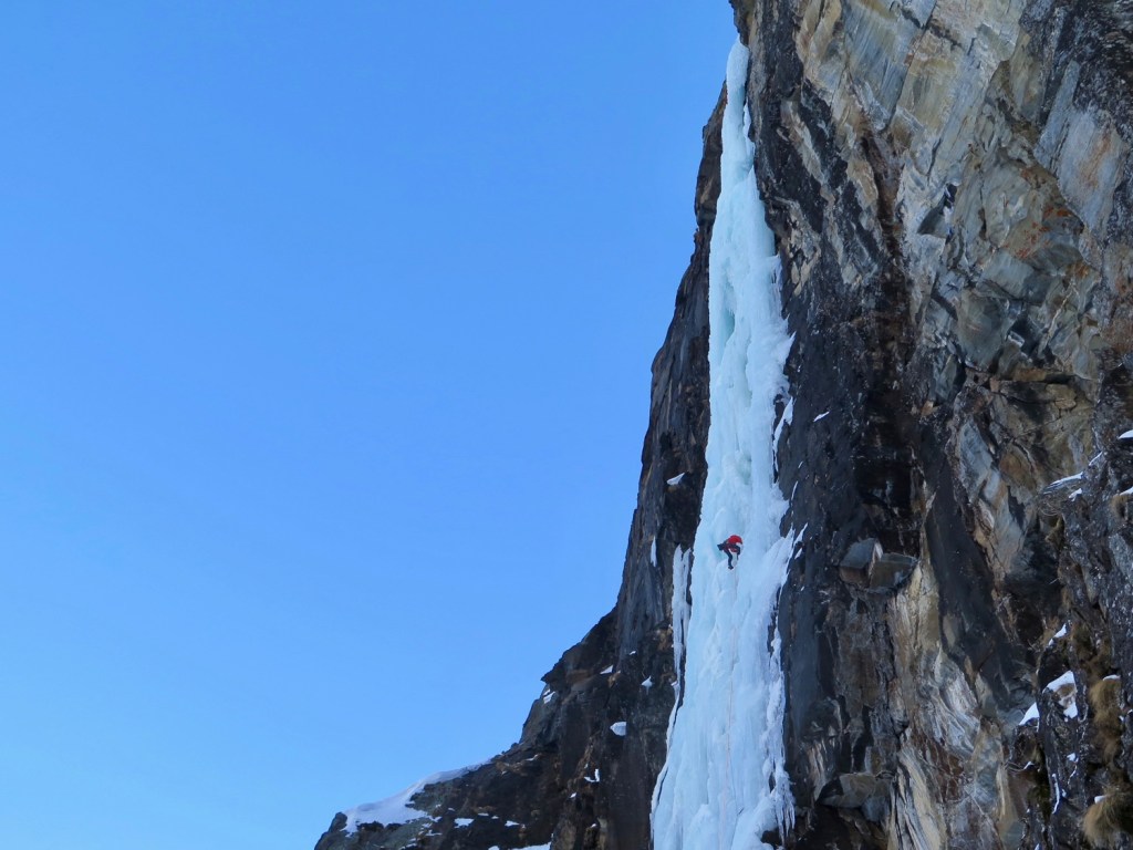 Cette année c’était l’objectif, et j’avais deux longueurs en glace à Lau Bij dans les pattes, il y a un mois de ça, autant dire que c’était pas gagné… Mais Bon, avec Morgan Baduel on a décidé d’aller voir quand même ! Après tout, avec tout les passages et les bonnes conditions apparentes, ça pouvait pas être si dur que ça ! Ou si ?