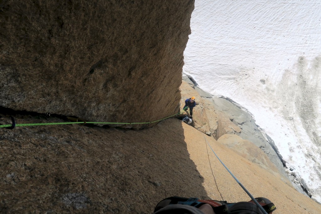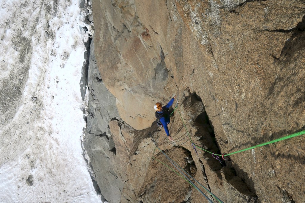 L’objectif du jour est une ligne que j’avais en tête depuis un petit moment, qui est une belle combinaison qui relie les 3 dièdres les plus individualisés de la face sud : Le dièdre Mazeaud, le dièdre de Ma Dalton, pour finir avec le dièdre Desmaison.