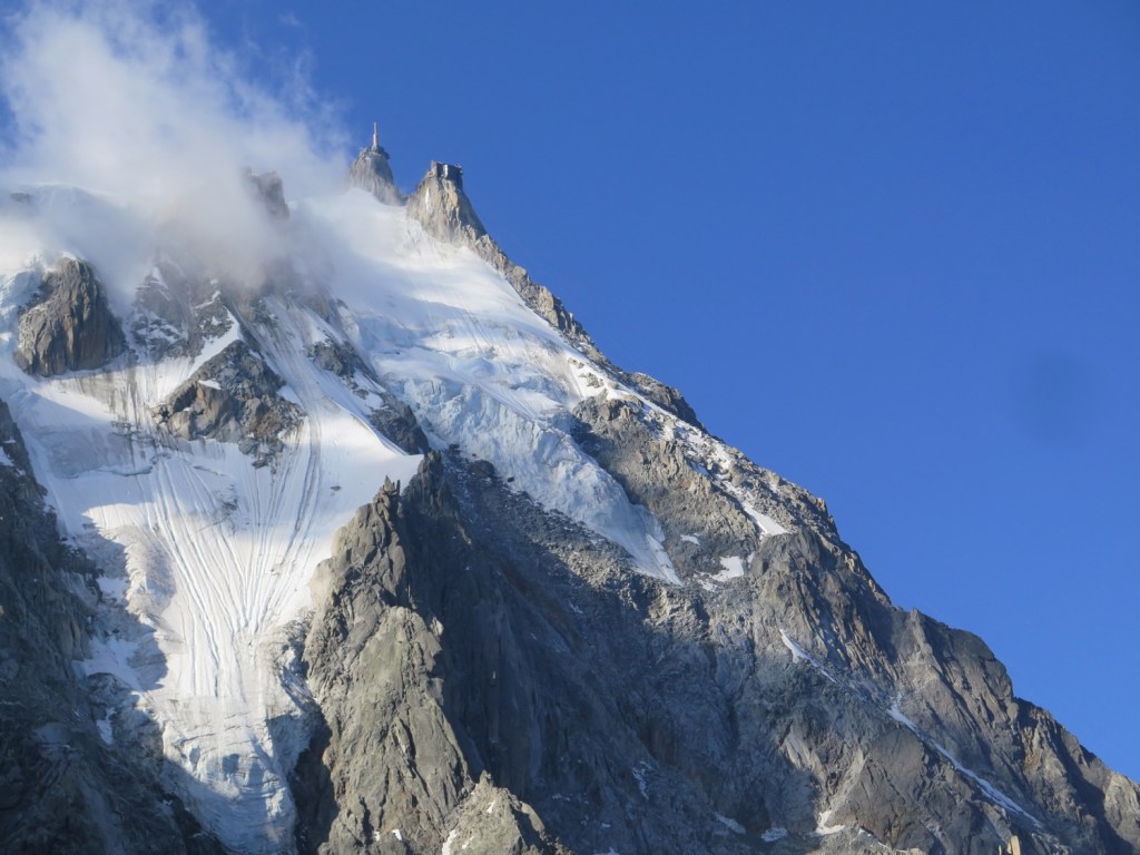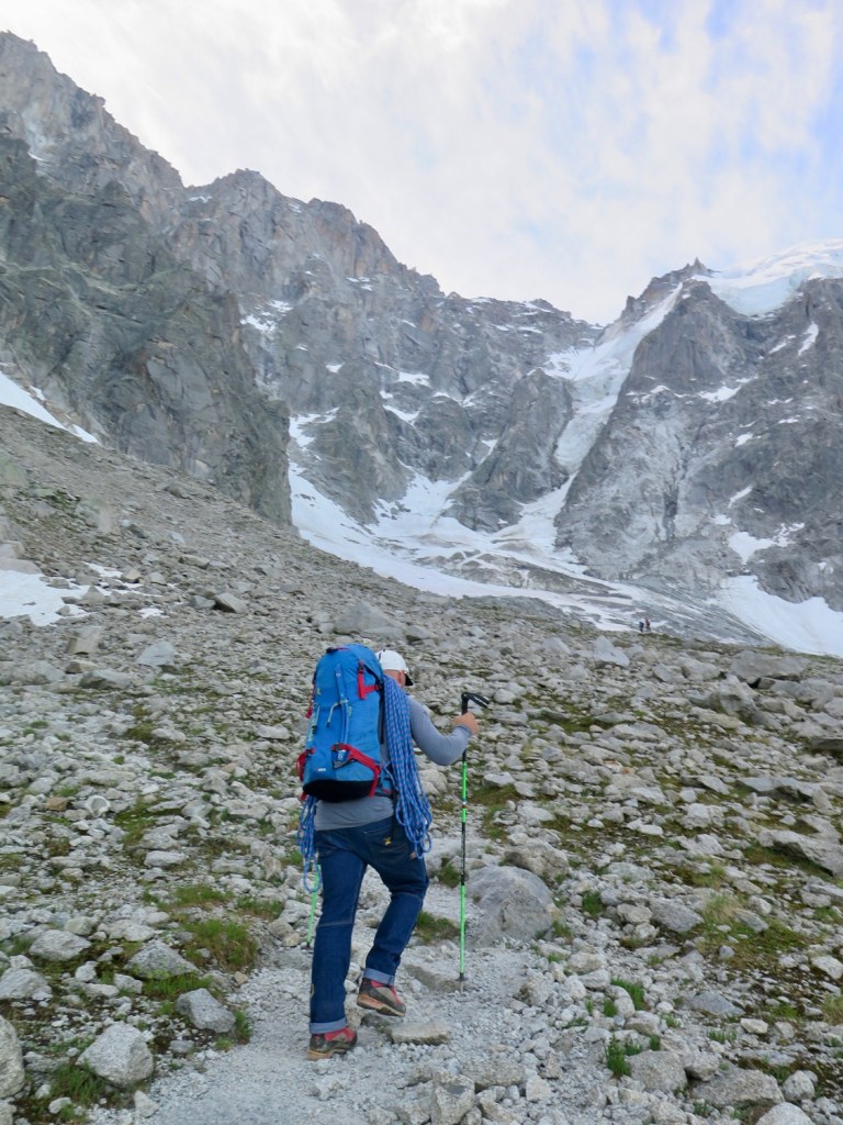 Après la marche d’approche sur la moraine du glacier des Pelerins, on arrive avec un peu de retard sur les premiers qui sont déjà dans l’attaque de la Contamine qu’il nous faut emprunter. En même temps on a eu que la 3ème benne!