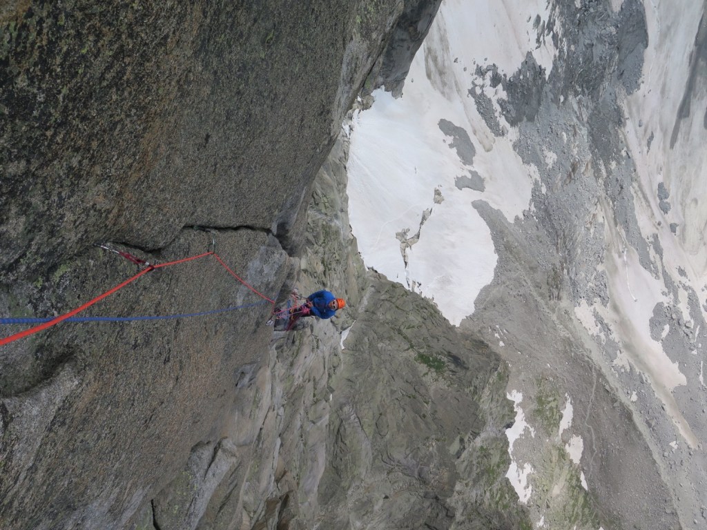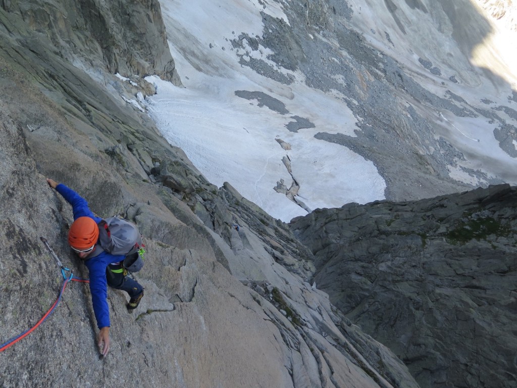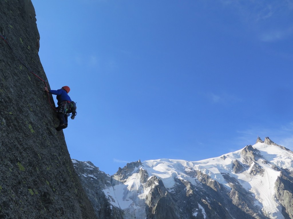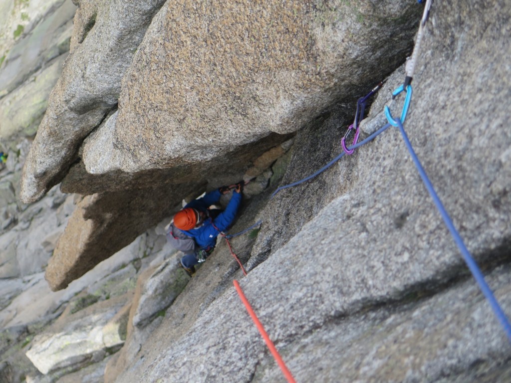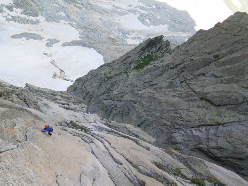 Le niveau de la grimpe se relève d’un cran, les mouvements deviennent plus aérien, mais on a quand même réussi à déposer nos voisins d’ascension qui sont pourtant dans la Contamine, bien plus facile !
