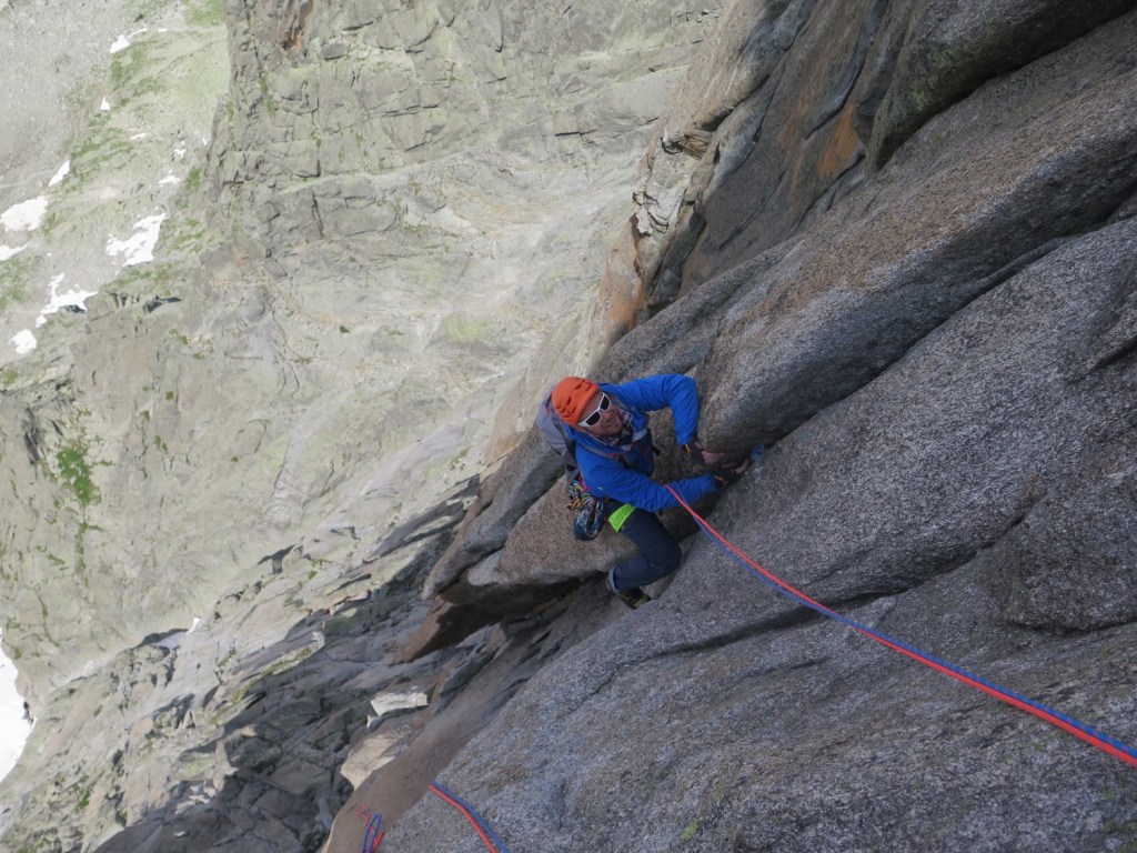 On prends rapidement de la hauteur à l’attaque de la voie, qui se déroule dans la partie raide.