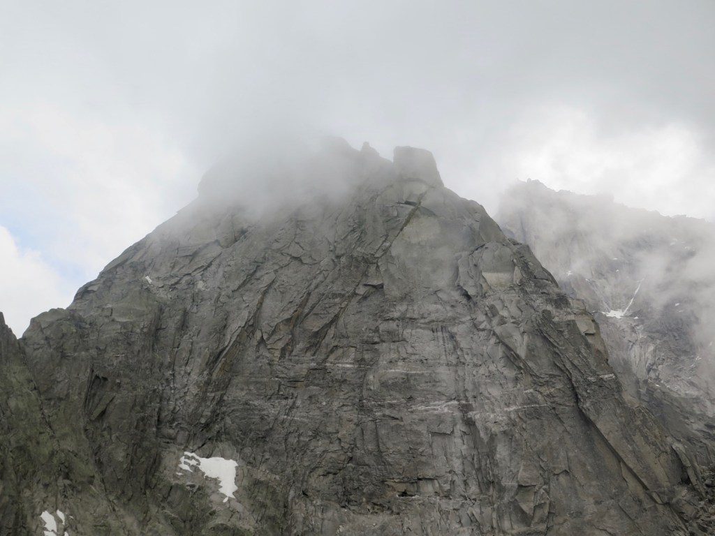 Arrivés au sommet vers 13h00, pas le temps de niaiser, la tendance est clairement à l’orage. Il faut redescendre !