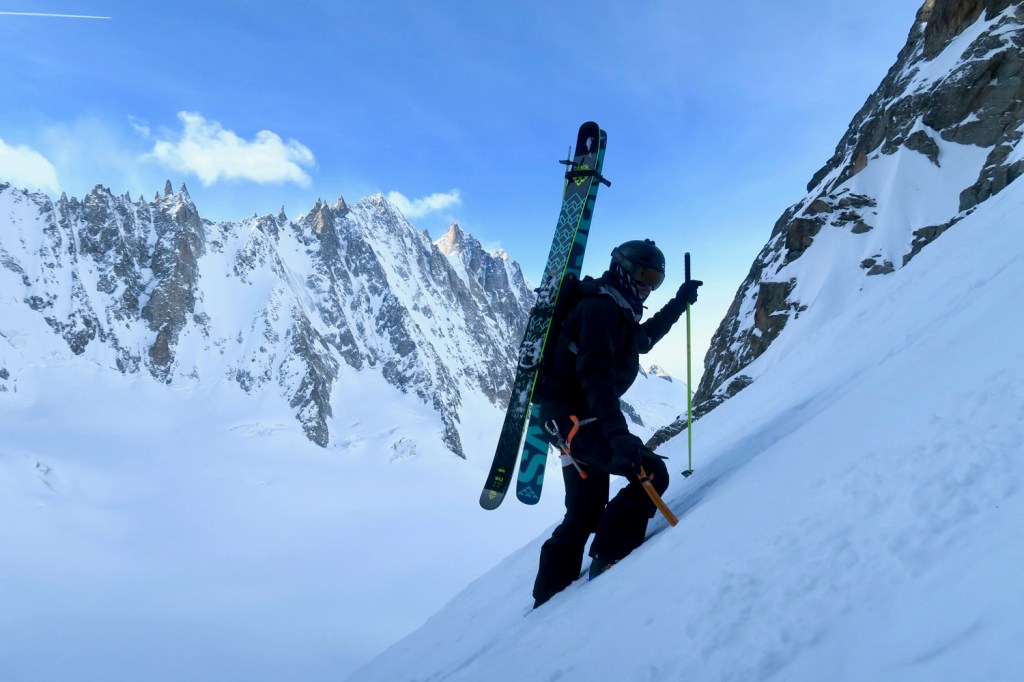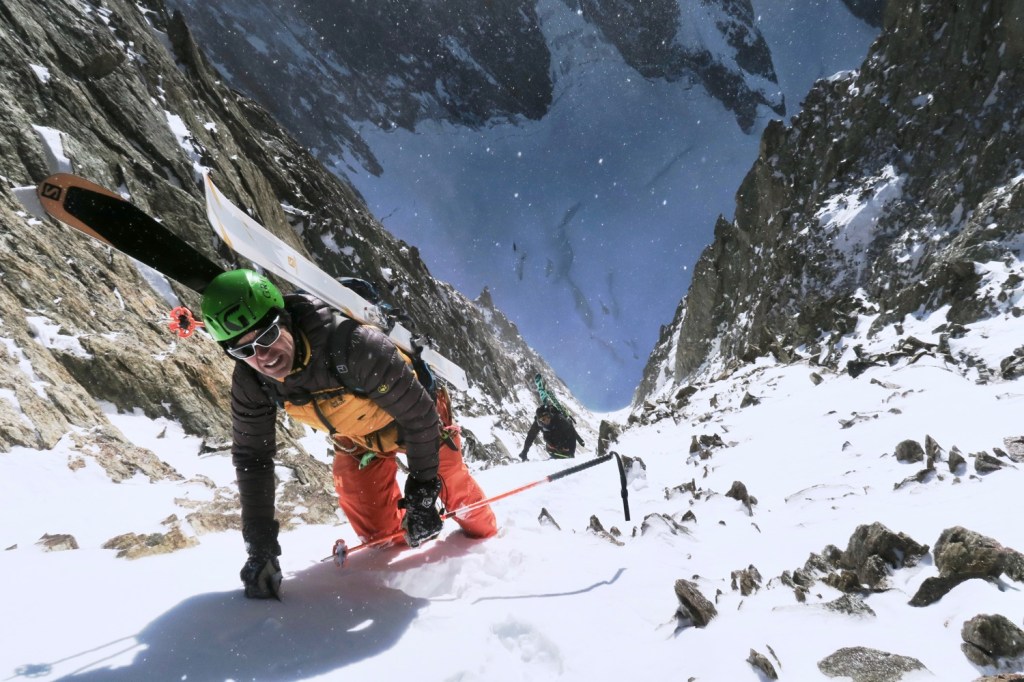 Le finlandais Mikko Heimonen, à la liste de descente en pente raide impressionnante, nous rattrape et nous aide à faire la trace sur la fin du couloir.