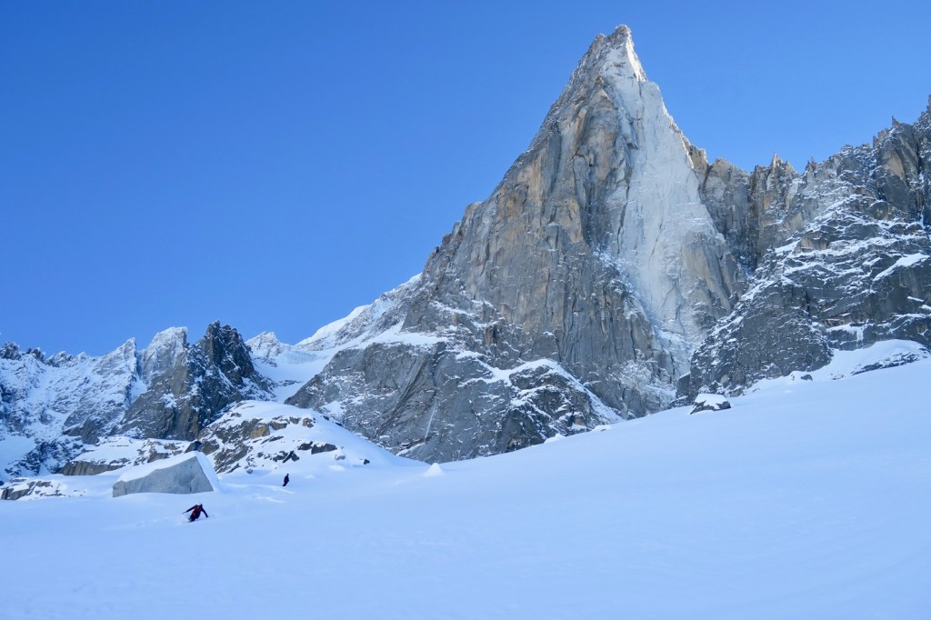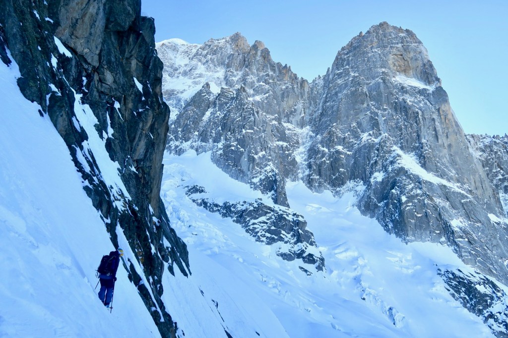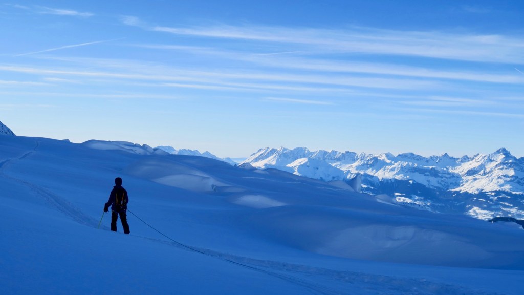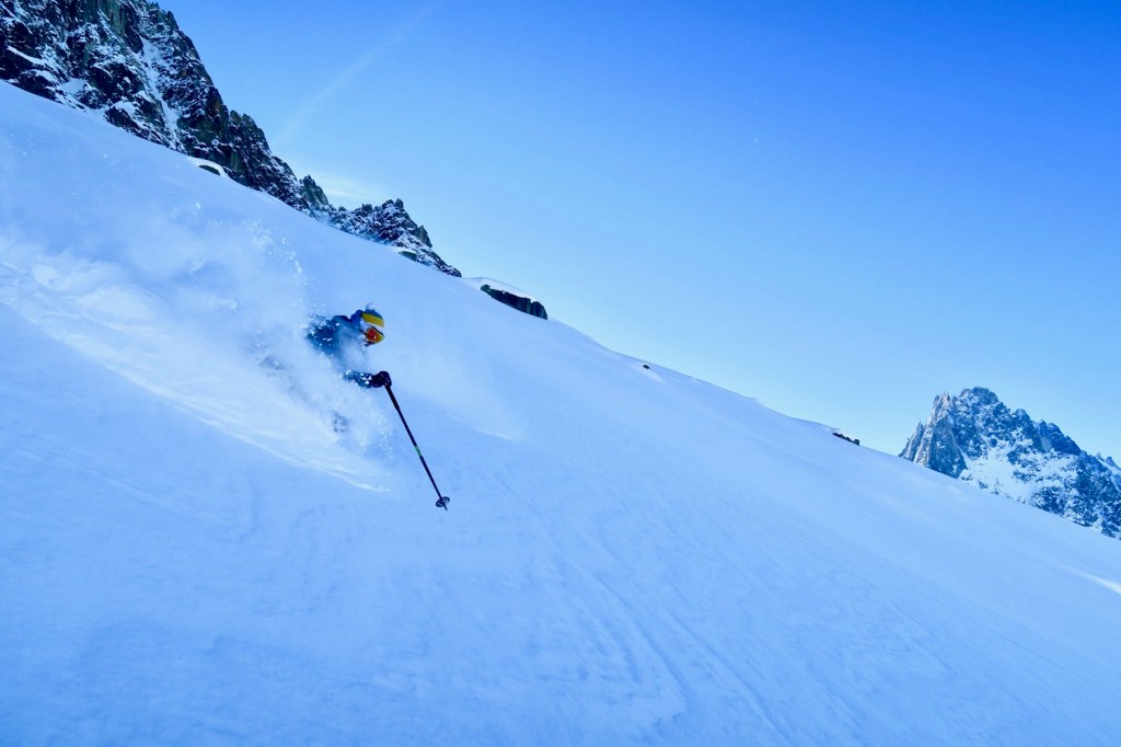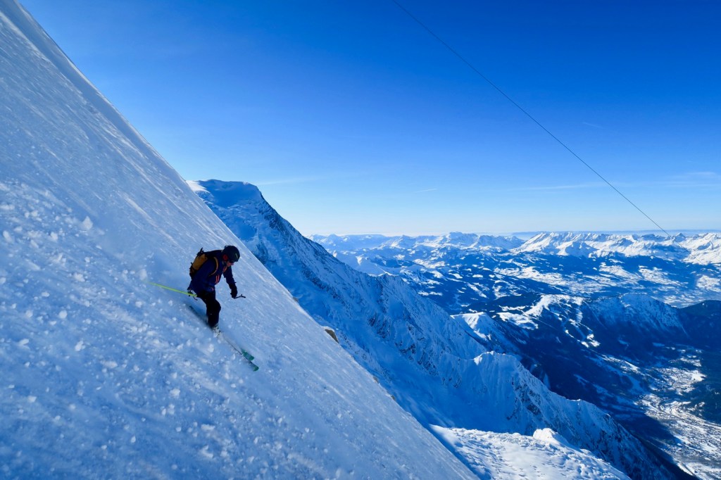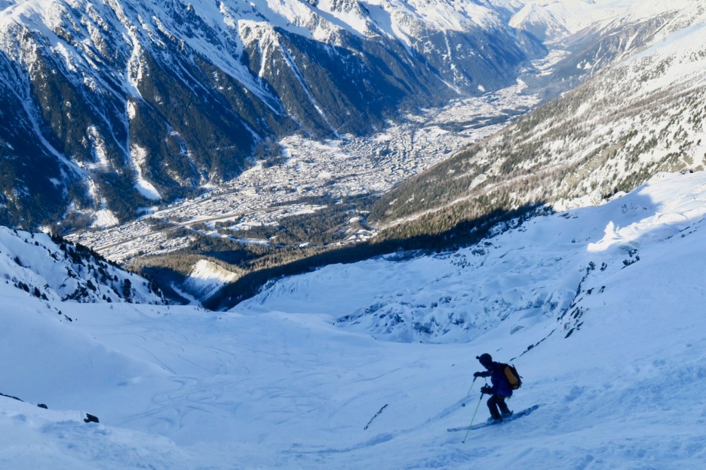 Petit resumé d’une journée de ski tout à fait standard à chamonix en février. Non en vrai c’était pas mal du tout ! Tout commence par une petite mise en jambe pour monter aux Grands Montets. D’un point de vue de skieur-rando totalement egoïste, cette absence des Grands Montets est une véritable aubaine, et permet encore de faire du bon ski plusieurs jours après la chute de neige, sans avoir à se faire la guerre pour aller faire la première trace. L’équipe du début de journée est constituée de Pierre Hourticq, Loïc Chamel, Louise Belison et de moi même.