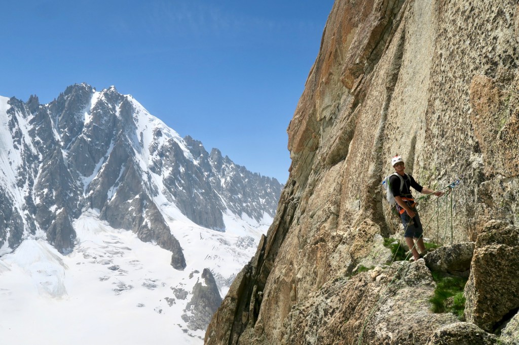 La première journée fut sans doute une des plus fatigantes pour tout le monde, et consista à rejoindre le refuge d’Argentière (depuis Lognan, en l’absence du téléphérique) et a optimiser l’après midi en allant grimper sur le beau granite du refuge qui fait la réputation des faces Sud.