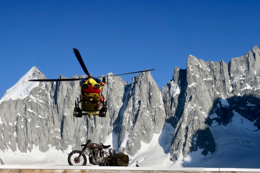 De retour au refuge en millieu de journée, nous nous délectons d’une excellente omelette cuisinée par les gardiens, Fred & Béa. Dans l’après midi, le PGHM nous offre en spectacle un impressionnant secours en face nord des Droites, à l’éperon Tournier. Sans gravité heureusement, mais la cordée avait pourtant pu observer les incessantes chutes de pierre la veille depuis le refuge, et elle a préféré se faire évacuer par hélicoptère pour cette même raison, et pour mauvaises condition de neige. Tiens dont ! Pour le style, peut mieux faire, et nous a fait nous questionner sur l’engagement en montagne, et l’usage de l’hélicoptère pour les secours. Pour nous s’engager dans une voie en « espérant que ça va faire, au pire, y a le PG ! » n’est pas du tout dans notre pratique et notre éthique.