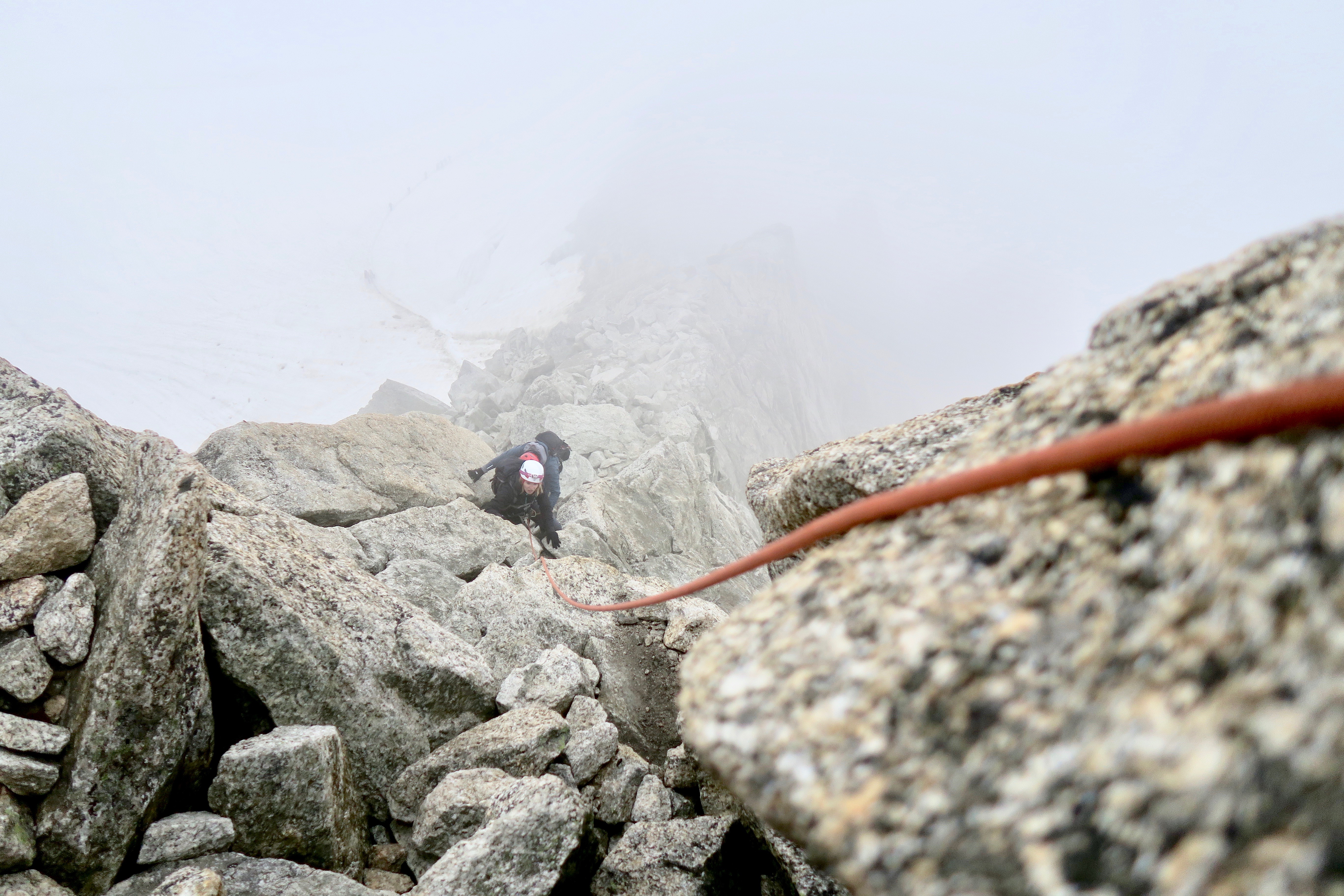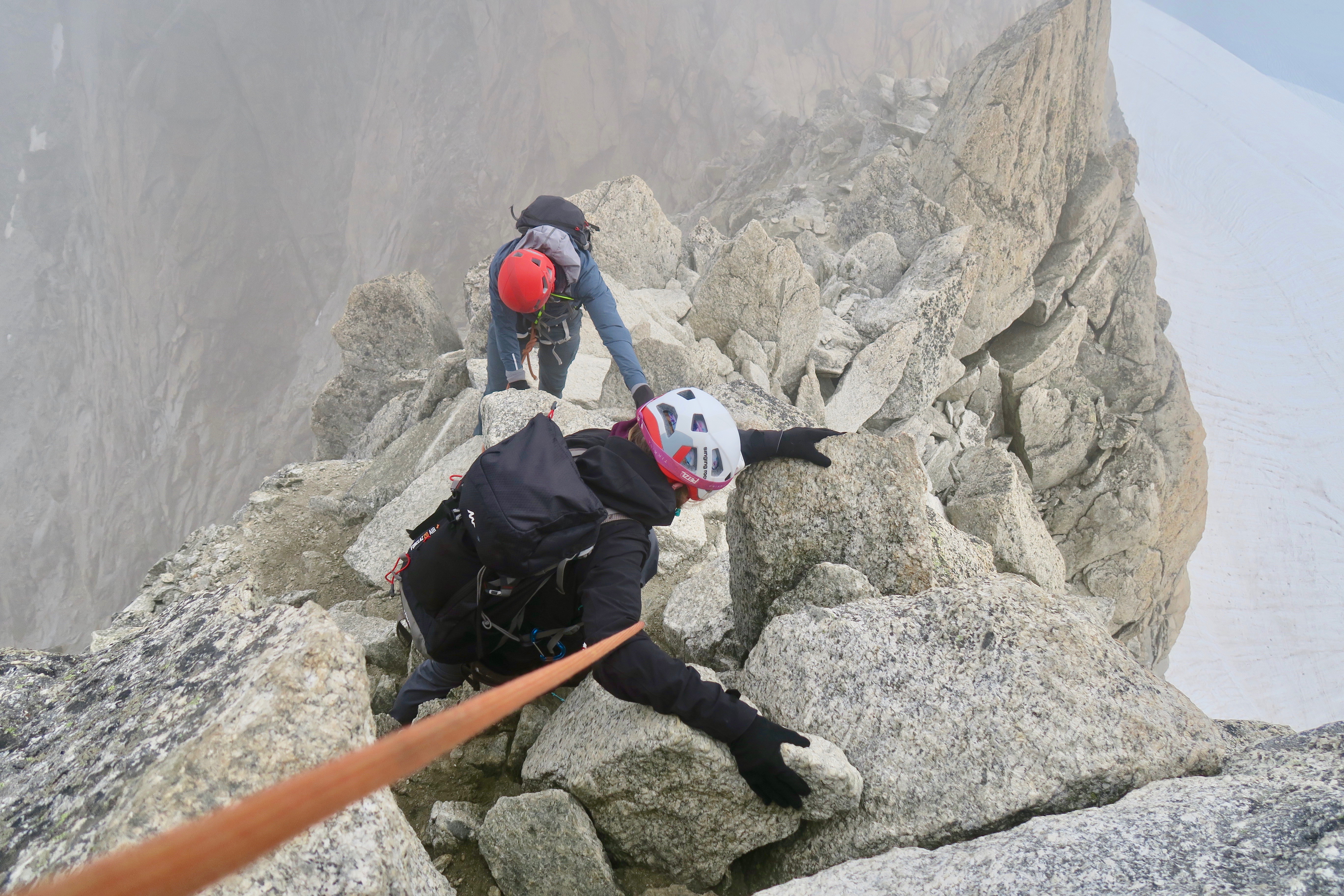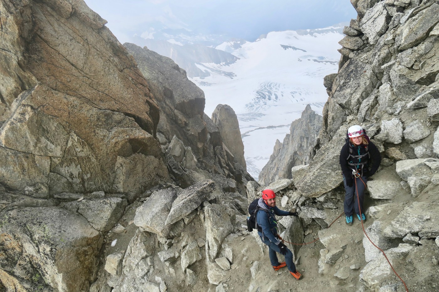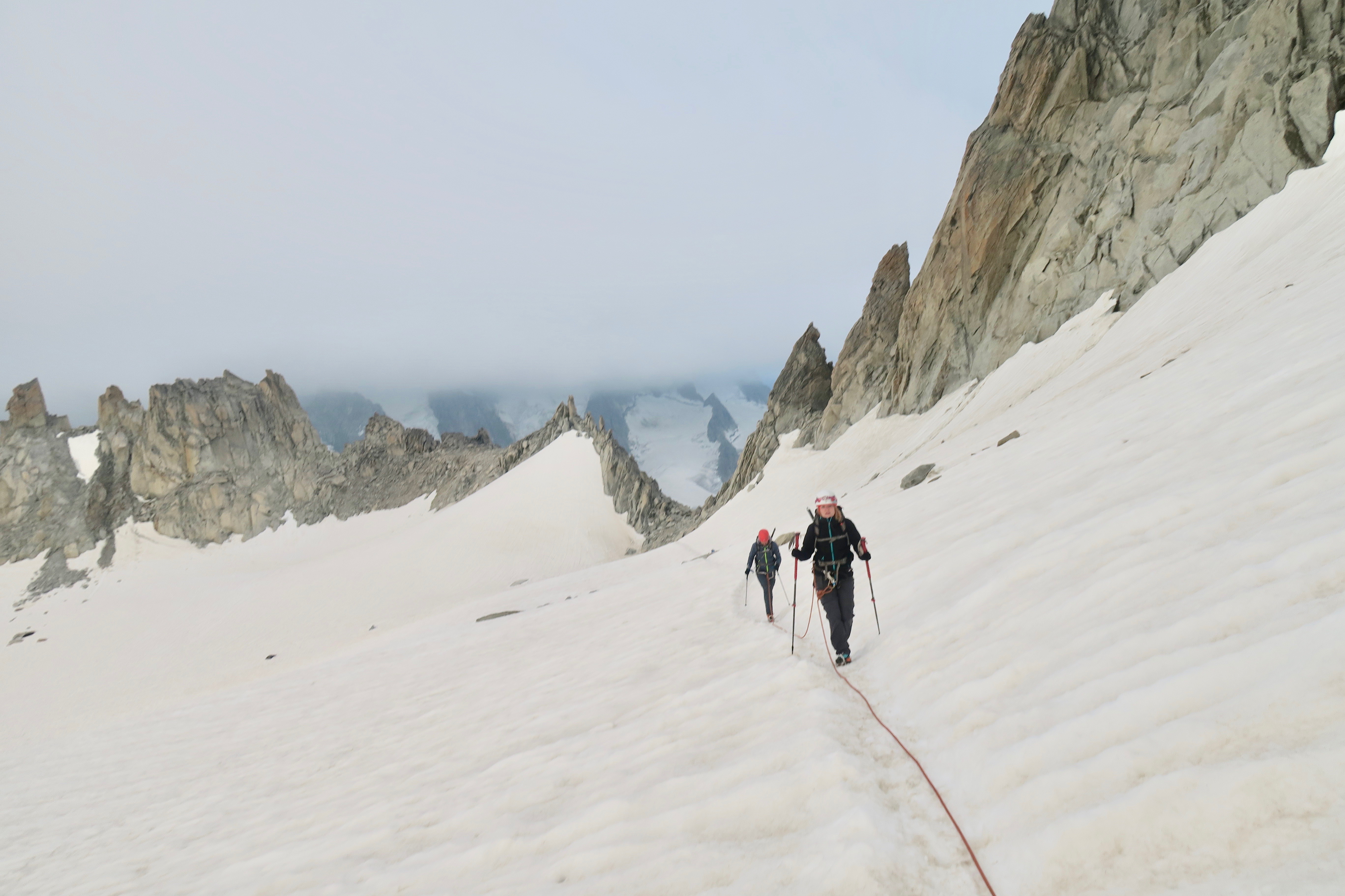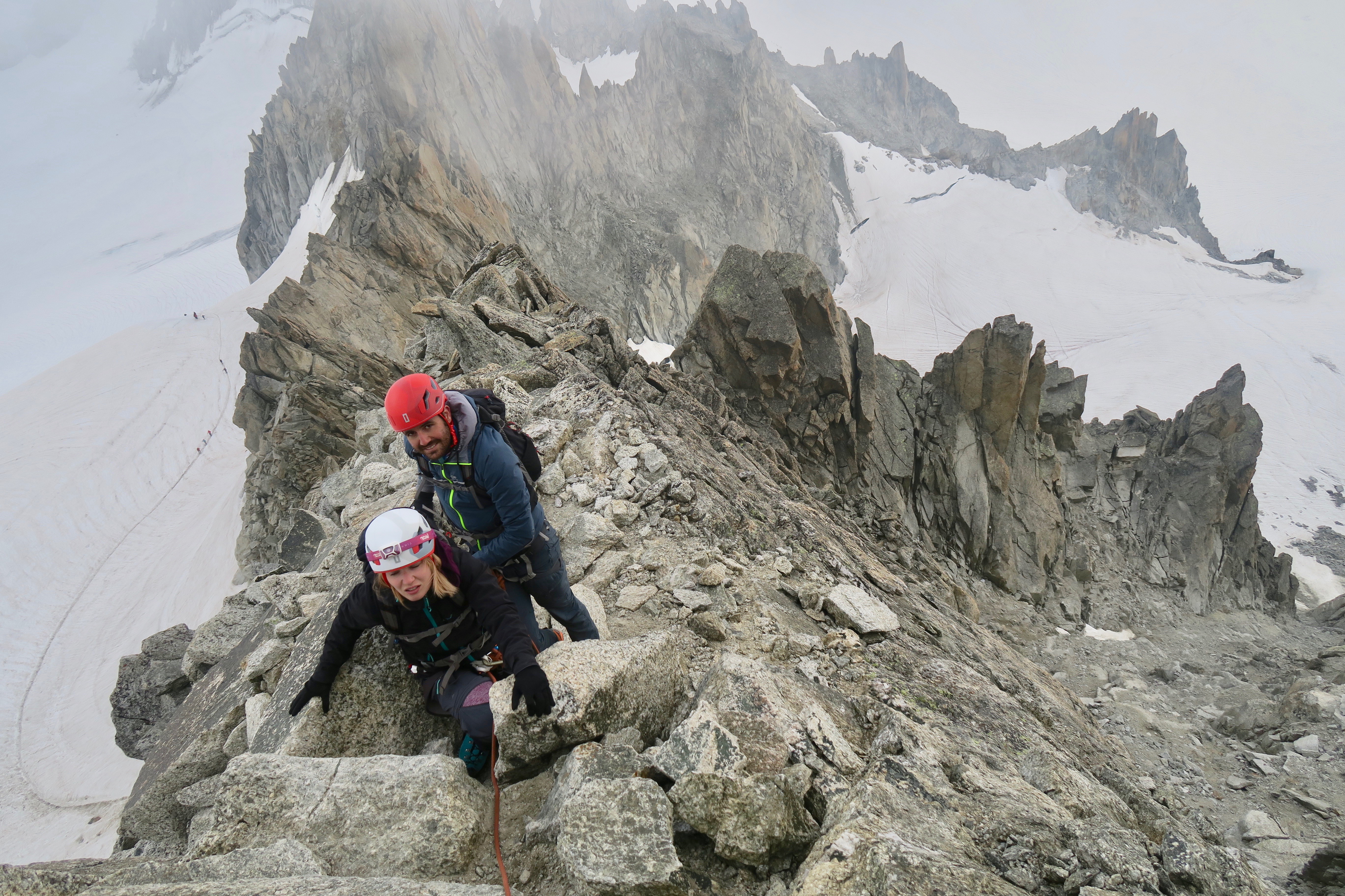 5 Août 2019, départ à 5 h du matin pour l’aiguille du Tour, un sommet parfait pour les premiers pas en Alpinisme… Rapidement nous remontons le long glacier du tour, pour arriver au col Supérieur du Tour, Que nous franchissons pour accéder au plateau de Trient et ainsi rejoindre la voie Normale. Je décide de prendre l’arête de gauche, variante un peu plus grimpante, permettant de réaliser une boucle. Mission accomplie, non sans quelques sensations pour Julian & Capucine !