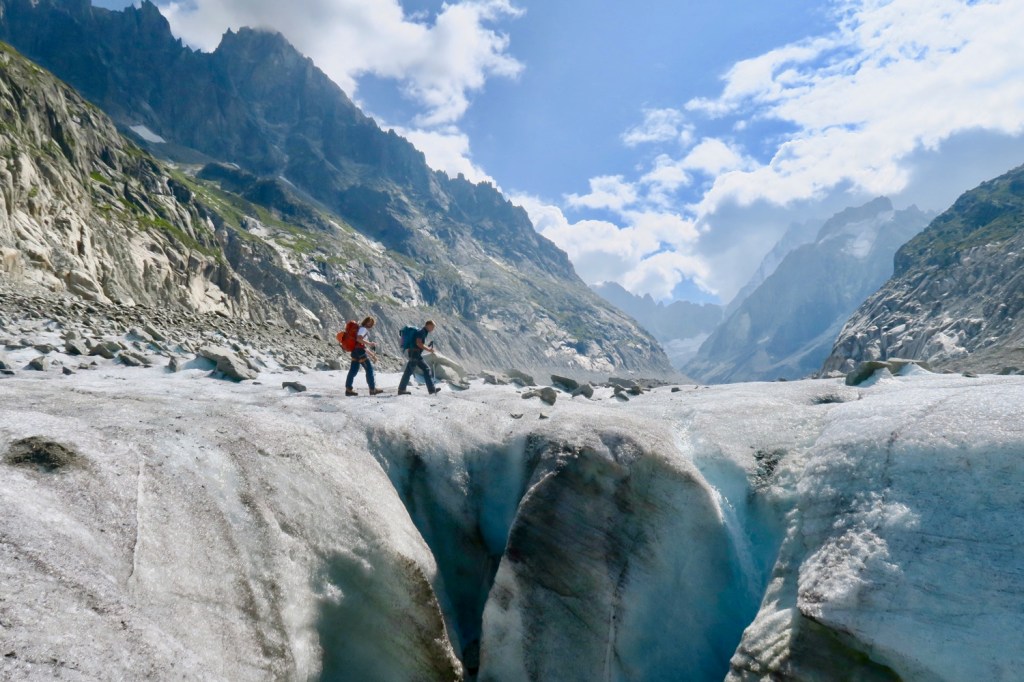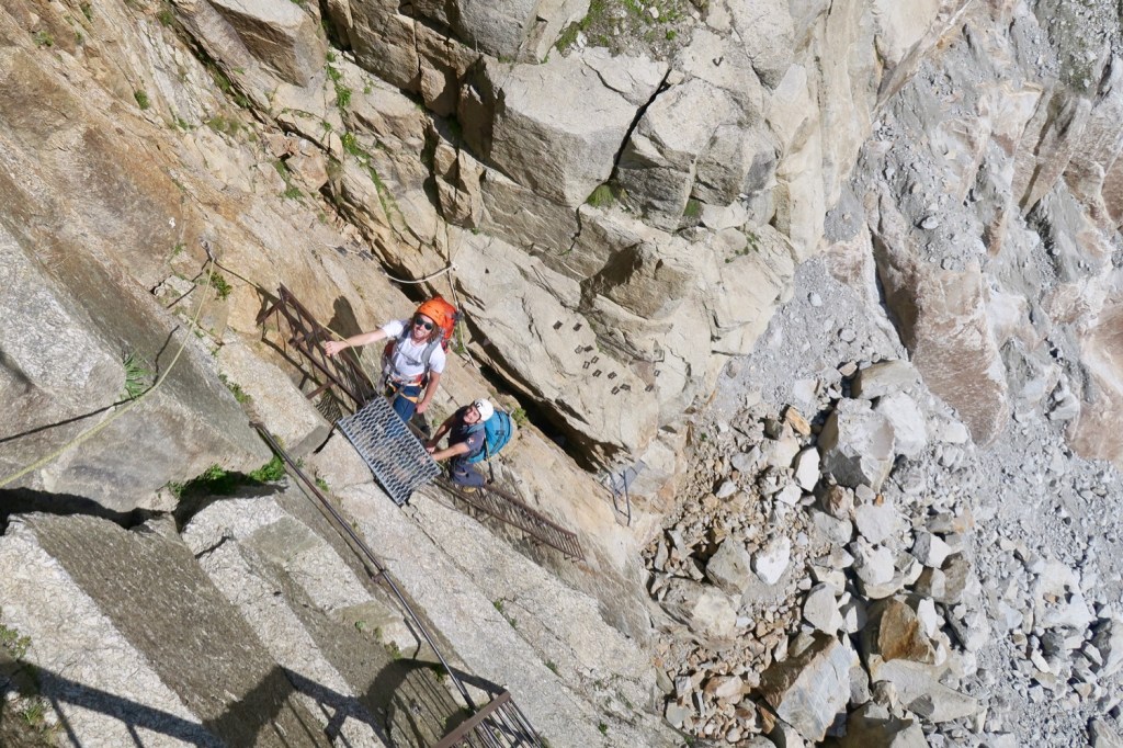 La première journée nous rejoignons le refuge du Couvercle.. Cette montée par les Egralets est assez longue, près de 4h de marche depuis le Montenvers… Mais le cadre magnifique fait vite oublier l’effort.