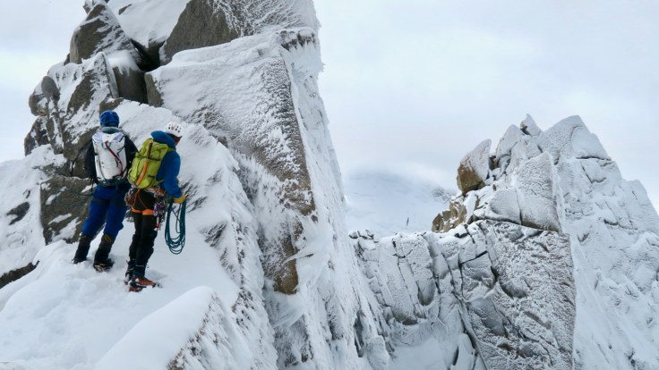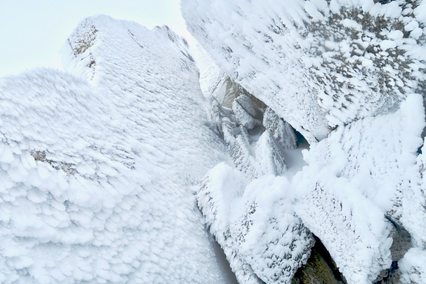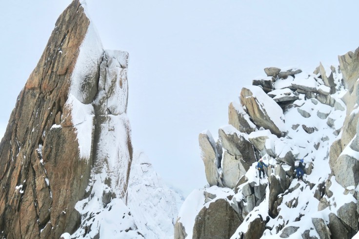 Avec tout ce givre en versant Nord, l’arête des Cosmiques prends des allures de Patagonie..