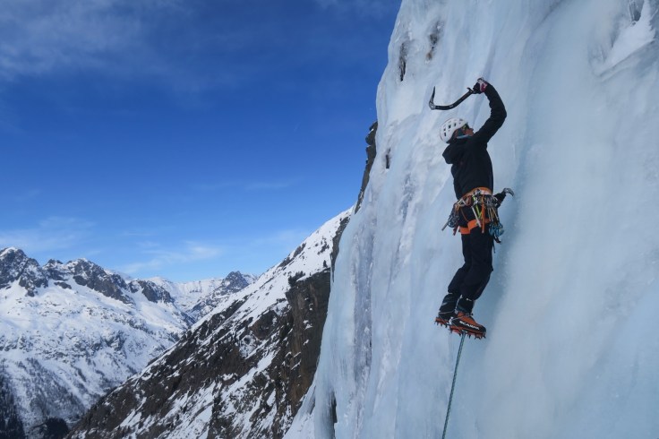 Pour nous, ça sera un objectif plus raisonnable mais non moins poétique, j’ai nommé le Grand Bleu. Immense rideau de glace offrant le choix de la ligne, des passages entre 4 et 5 sur près de 100 mètres, et une glace d’un bleu intense, du pur bonheur pour un glaciériste au niveau raisonnable.