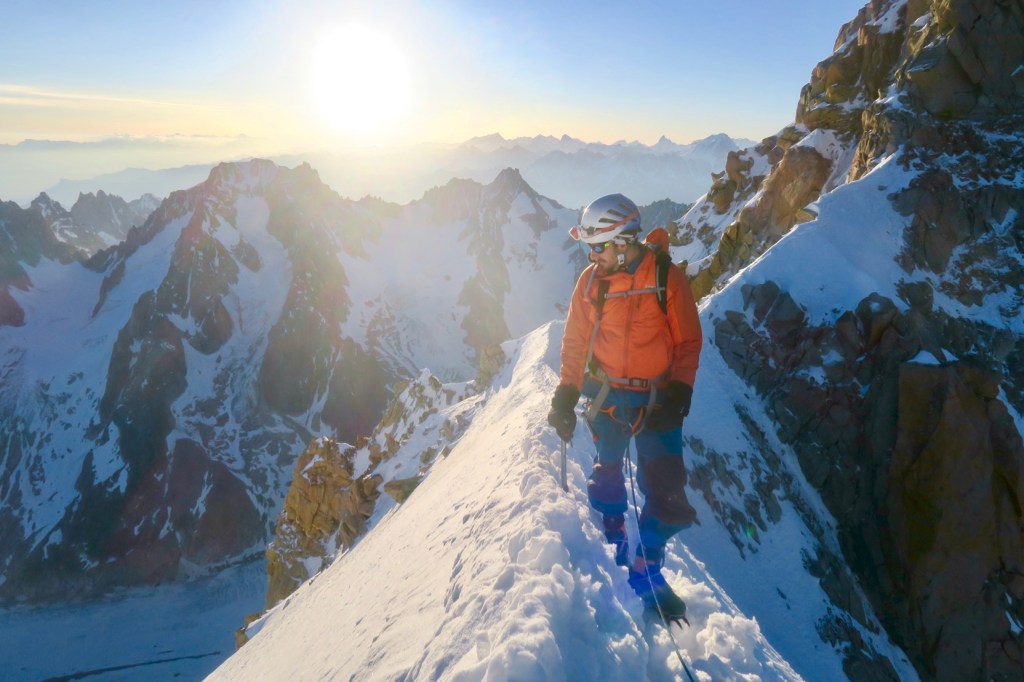 Vers environ 6h, nous arrivons au col de la Grande rocheuse et prenons pied sur l’arrête sommitale, parfait timing avec la « golden hour ».