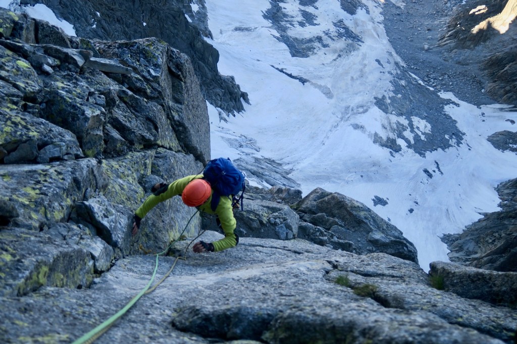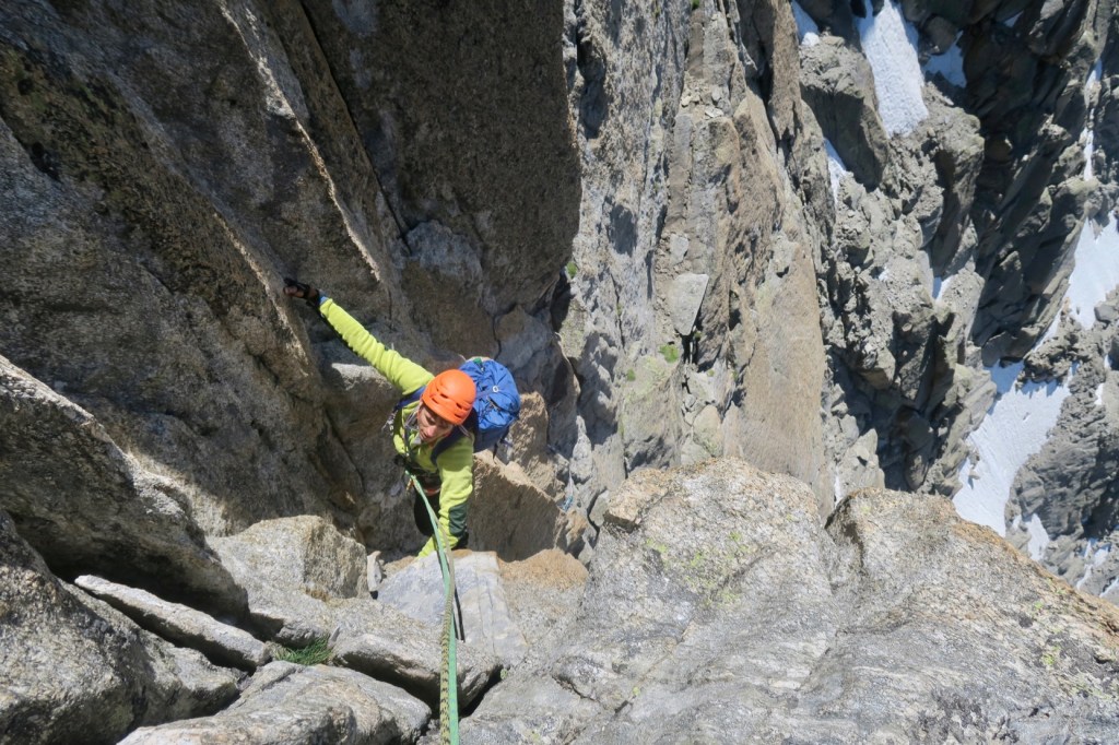 Après deux petites longueurs faciles et un peu de grattage de cristaux, nous rejoignons enfin la belle arête sommitale !