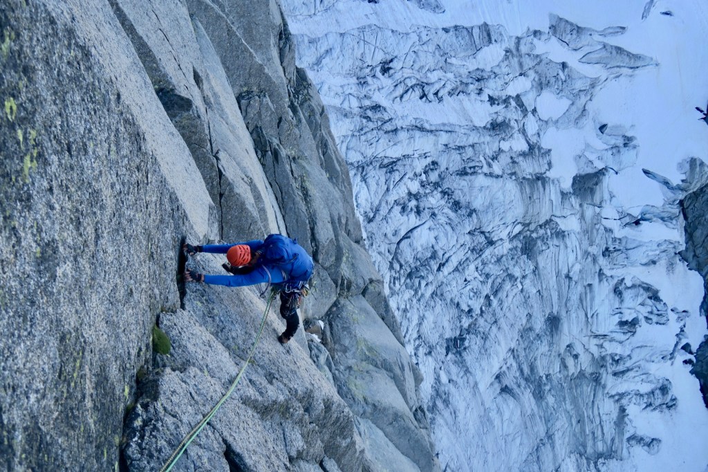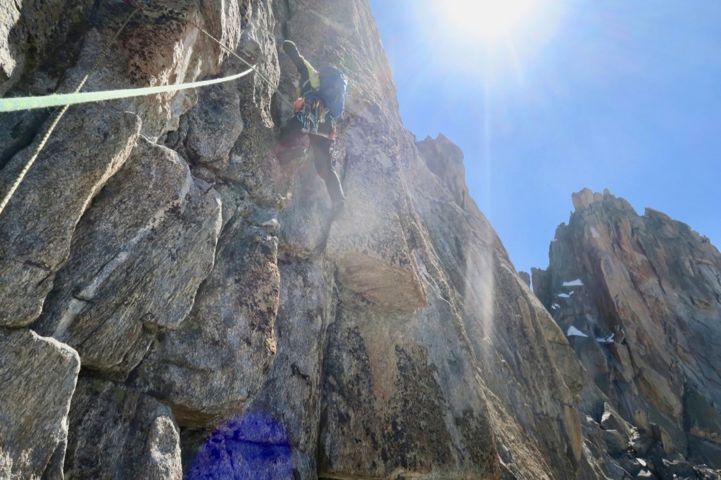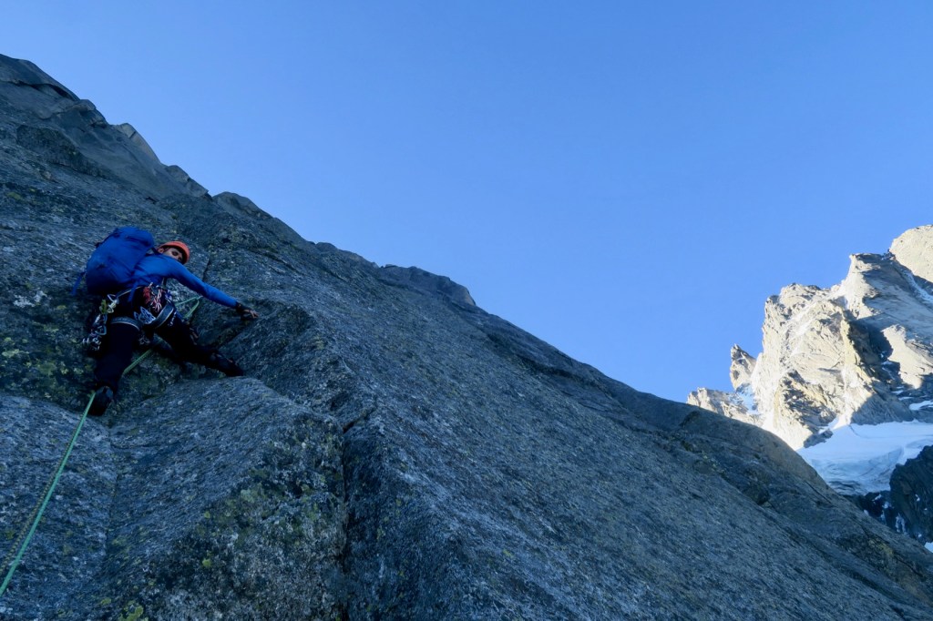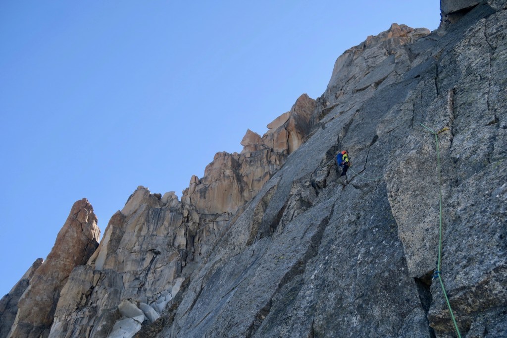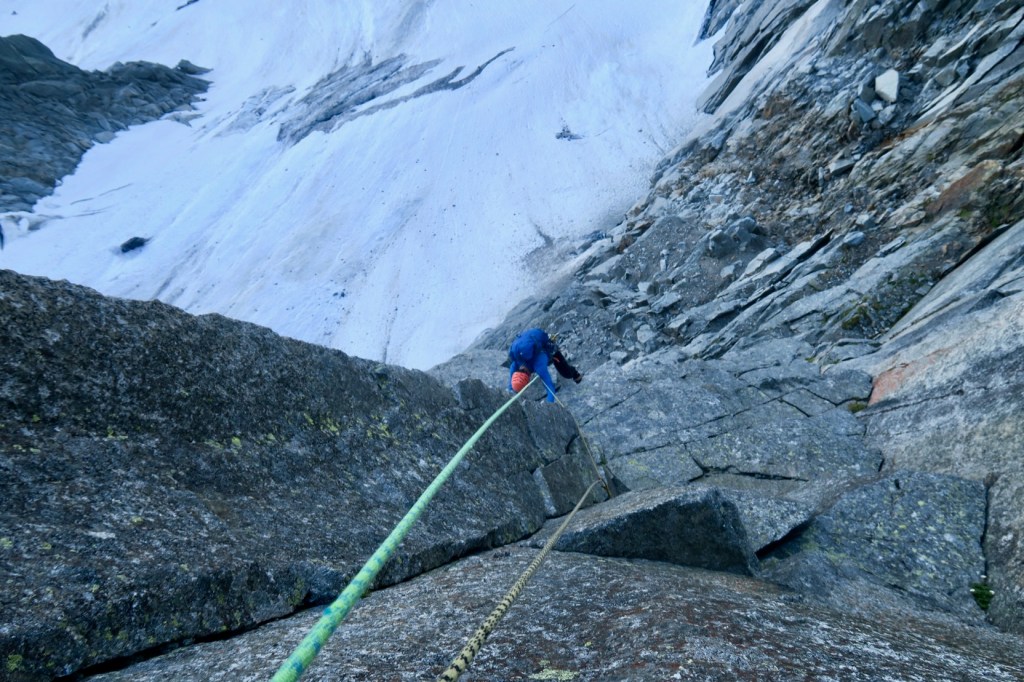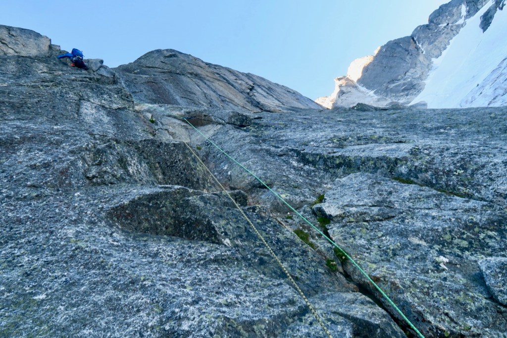 On est sur un bon rythme et nous faisons un peu de corde tendue. Il y a des relais un peu partout, et c’est dur de savoir quand s’arrêter. Dans le doute si il n’y a pas de pas trop dur, on trace 🙂