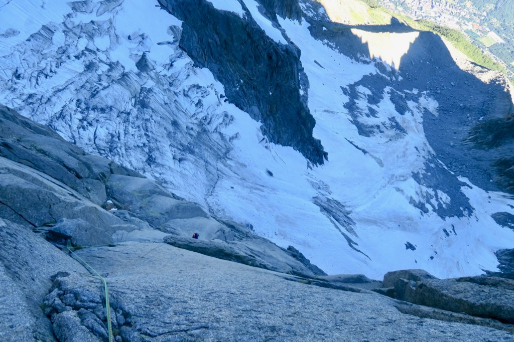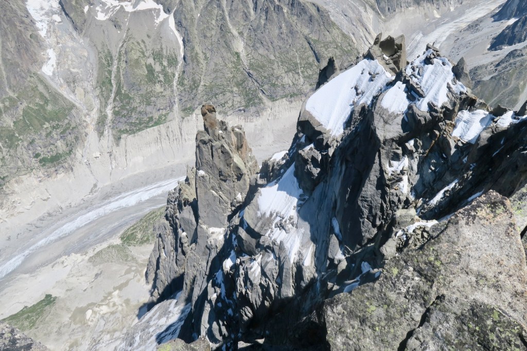 Finalement un peu plus de 7h dans le pilier, pour enfin admirer la vue plongeante sur la face nord et la Mer de glace (qui fait bien de la peine, by the way)…