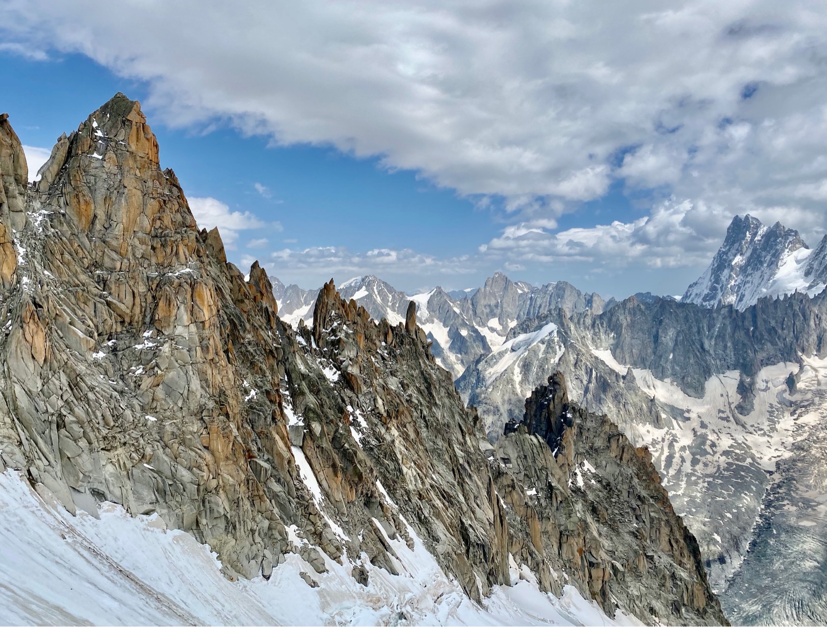 Lors de la première semaine du Stage Final du guide, nous avons avec Aymeric Clouet (ENSA), Jean Baptiste Castellani et Emanuel Bazogue eu l’occasion de parcourir une arête oubliée du massif. Mais avant de la présenter il faut remettre les choses dans leur contexte. Nous sommes au mois d’aout, et la montagne est encore en bonnes condition pour la saison. Dans notre groupe nous avons eu un peu de mal à trouver un objectif de la semaine, entre les refuges souvent pleins, et le créneau météo, et les autres groupes qui on été plus rapides à la prise de décision que nous.