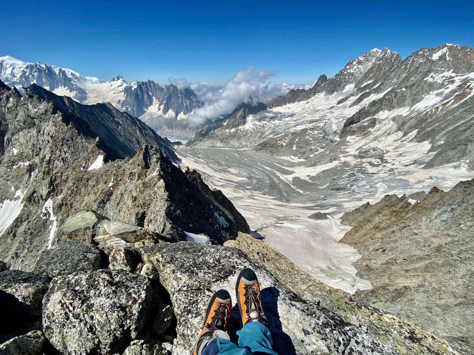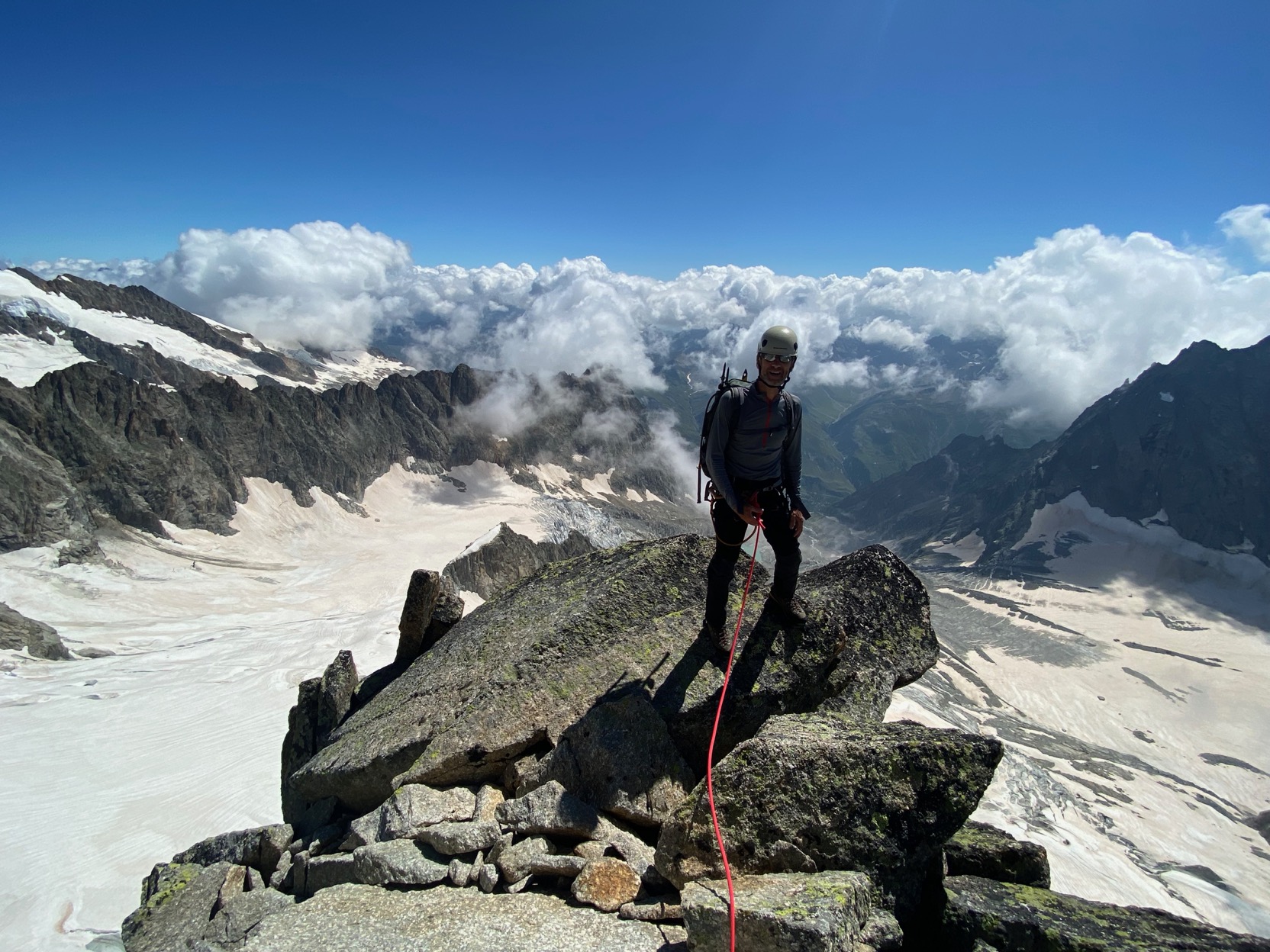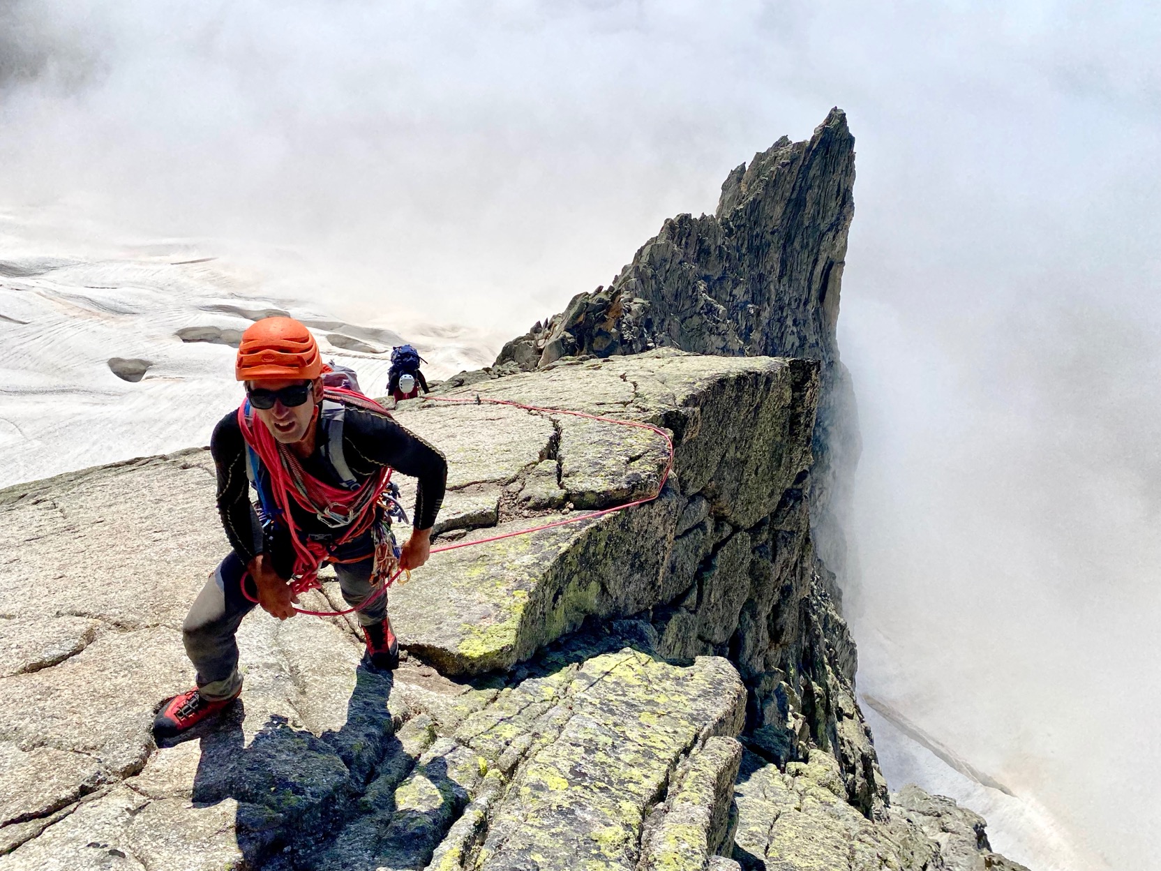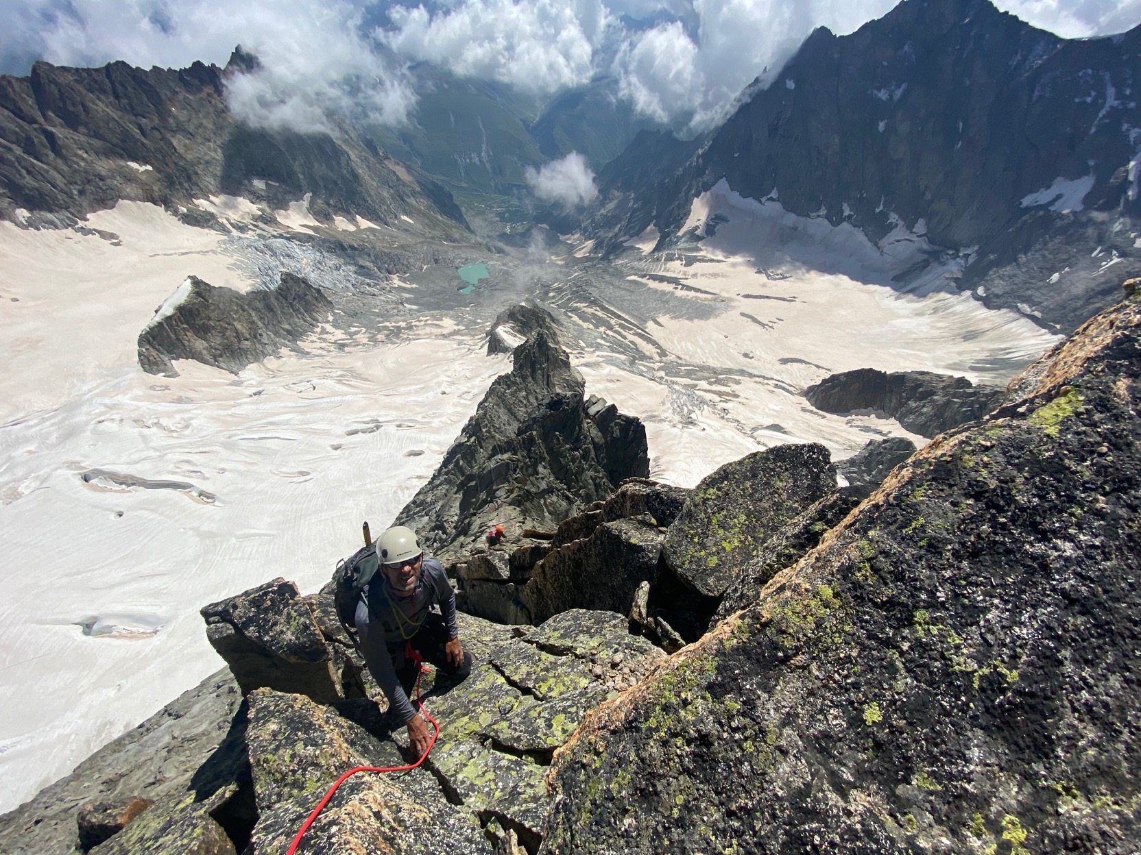 Dans le massif du Mont Blanc, il aura laissé sa marque sur la longue arête Sud de l’aiguille de Savoie, qu’il a ouverte en solo (en aller retour, depuis la vallée à la journée) en 1913. La difficulté raisonnable de l’itinéraire et la solitude quasi garantie dans ce recoin du massif on fortement motivé Charles à nous proposer cette course, une belle idée pour laquelle nous lui sommes tous reconnaissants.