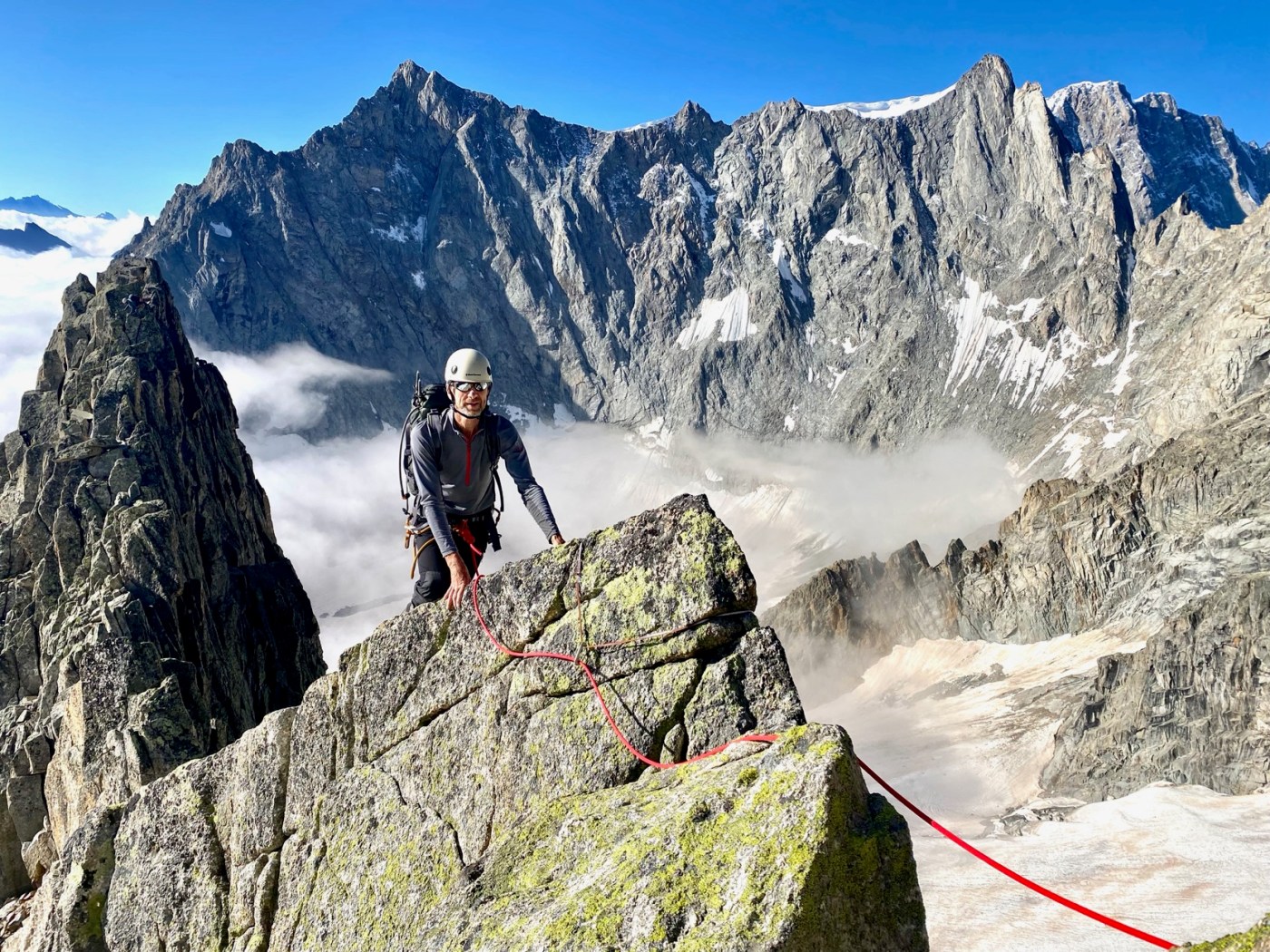 Dans le massif du Mont Blanc, il aura laissé sa marque sur la longue arête Sud de l’aiguille de Savoie, qu’il a ouverte en solo (en aller retour, depuis la vallée à la journée) en 1913. La difficulté raisonnable de l’itinéraire et la solitude quasi garantie dans ce recoin du massif on fortement motivé Charles à nous proposer cette course, une belle idée pour laquelle nous lui sommes tous reconnaissants.