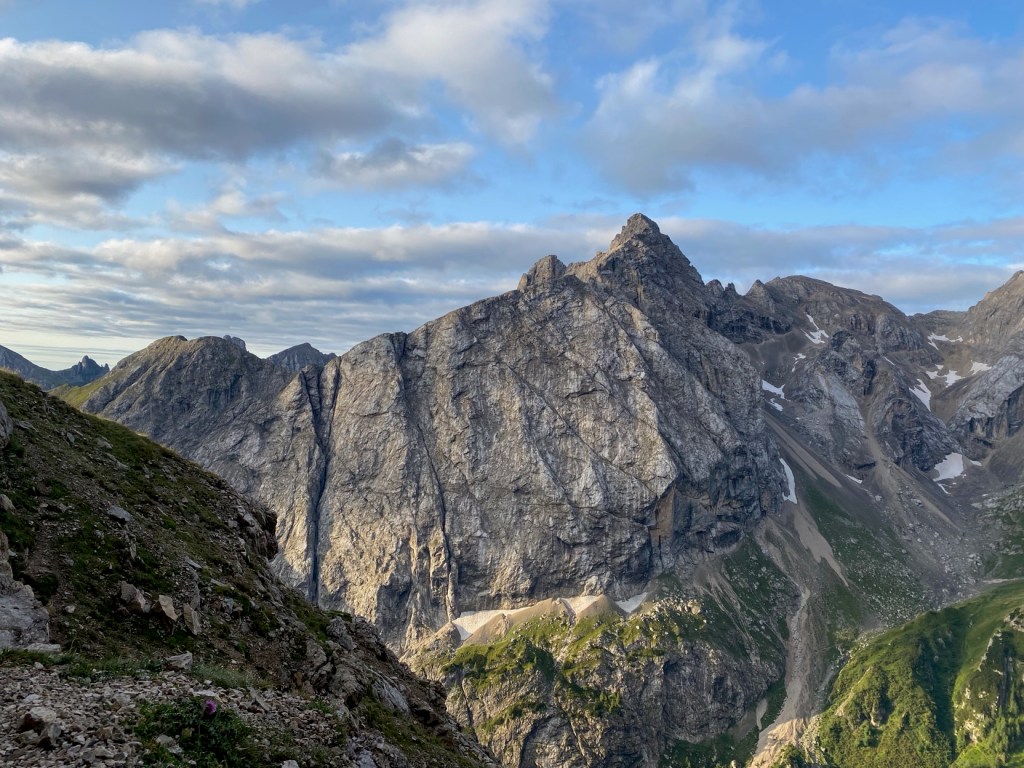 C’est donc a quatre cordée que nous nous retrouvons au pied de la voie aux alentours de 7h30, et malgré quelques nuages résiduels le ciel semble dégagé et une belle journée se présage. Cependant j’ai le présentiment que ça ne va pas durer.
