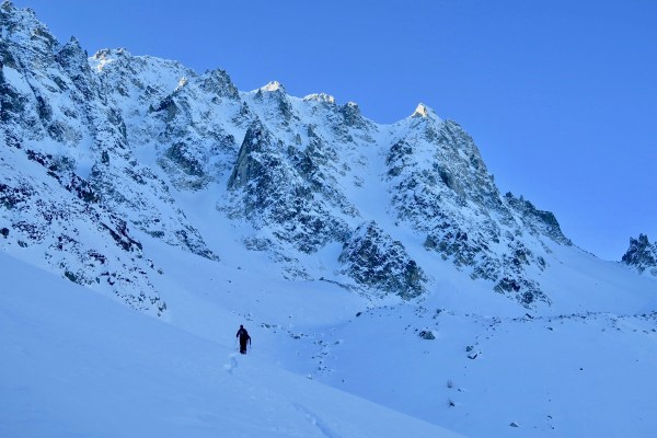 Après une belle petite goulotte à la Pointe 2977 de la Dent du Requin et une bonne nuit seuls au refuge, nous partons pour l'envers du Requin. Le réveil sonne a 5h00, départ 6h00, nous espérons arriver au pied avec les premières lueurs du jour. L'approche se fait tranquillement à ski en remontant le glacier... Lire la Suite →